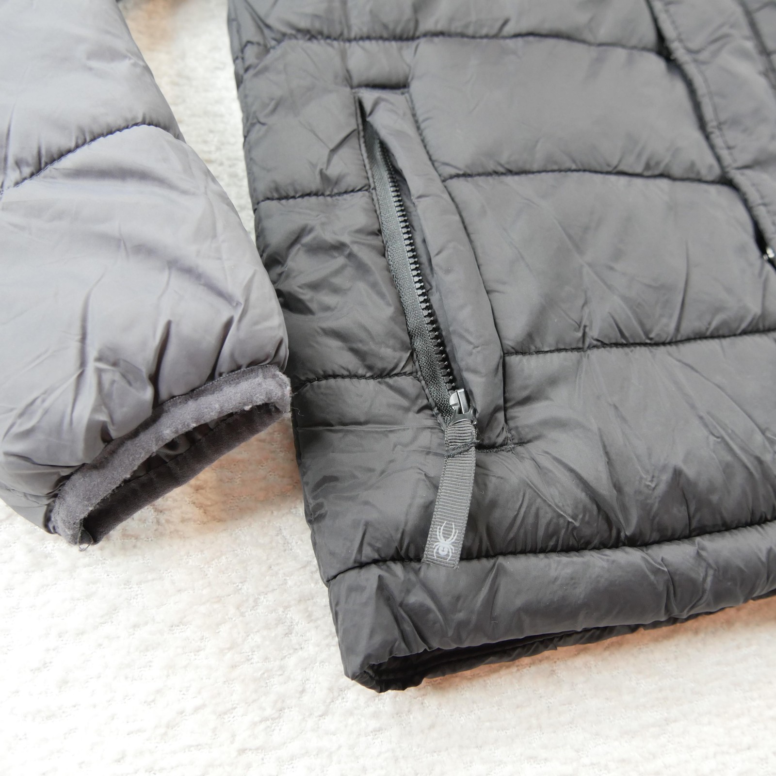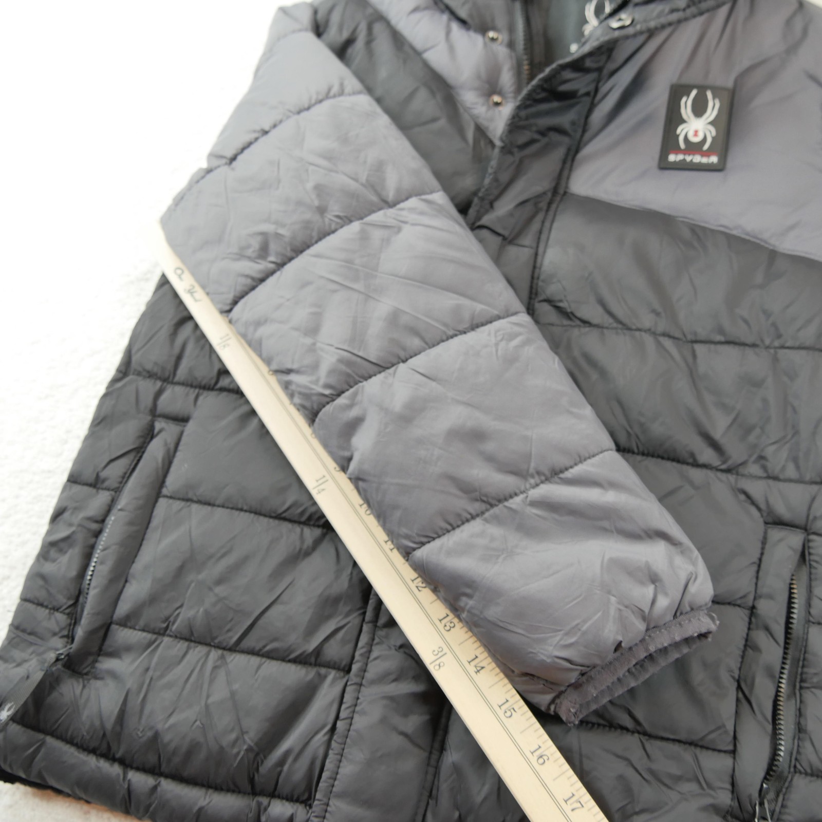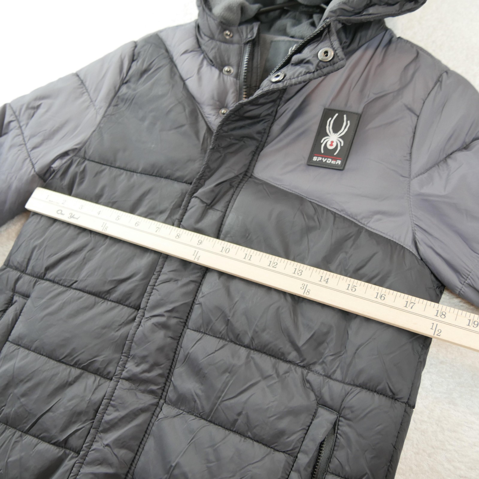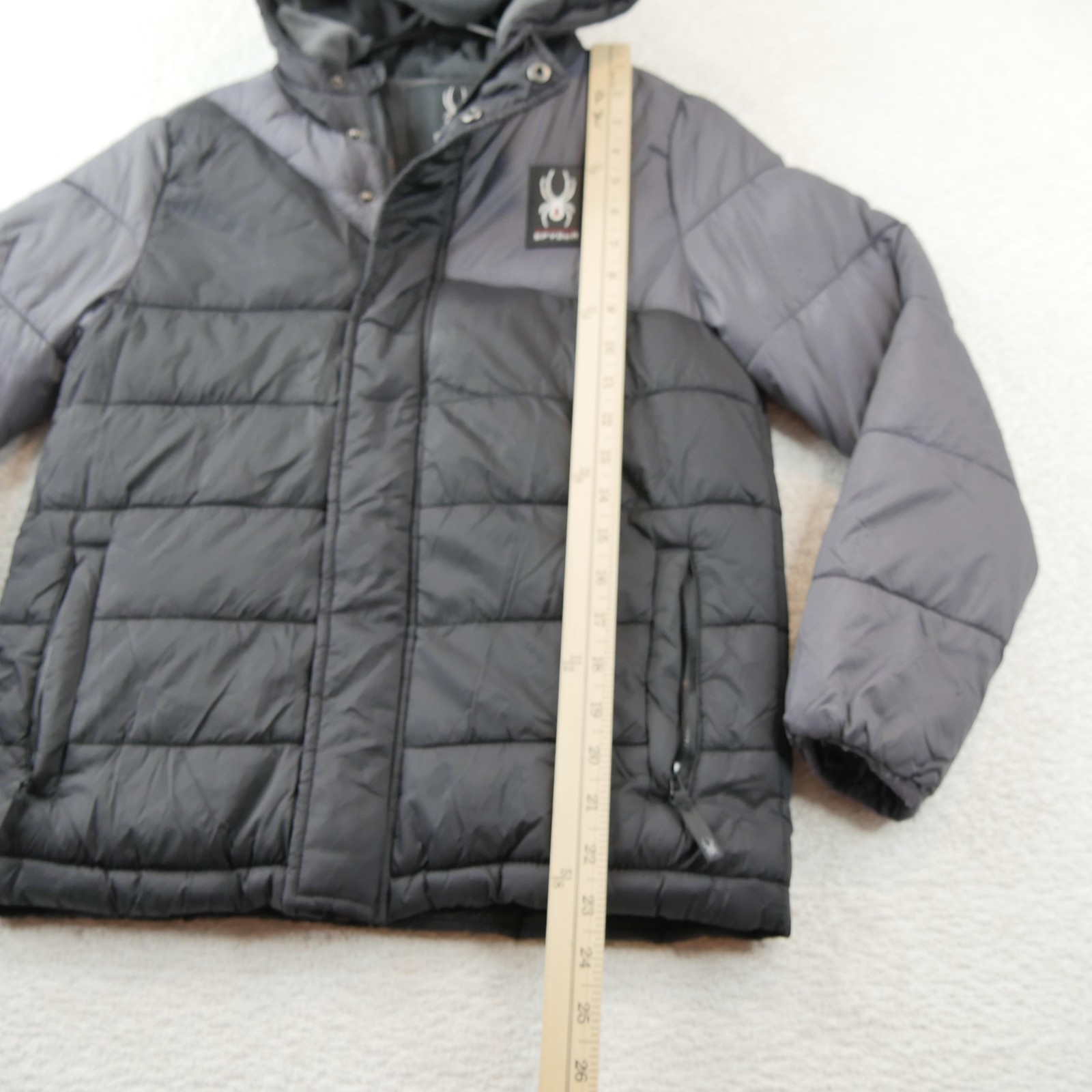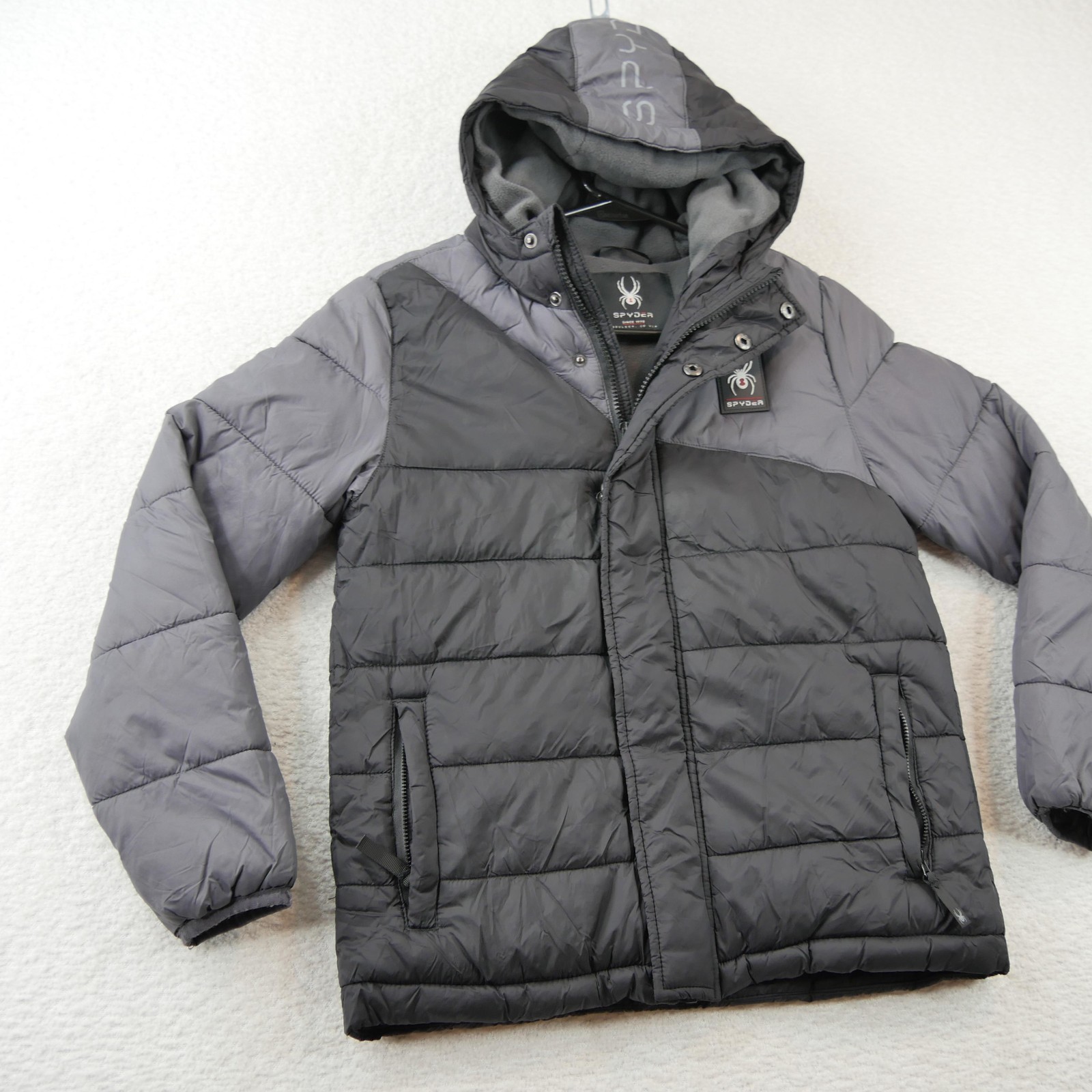 как выглядит Spyder Jacket Youth Medium 10/12 Gray Hooded Puffer Quilted Ski Winter Coat фото