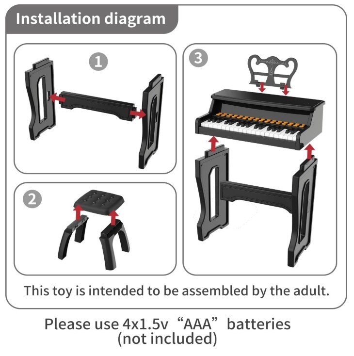 как выглядит Kids 37-Key Electronic Piano Keyboard w/ Mic Stool Music Toy Educational Black фото