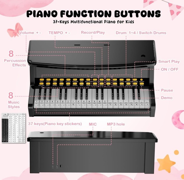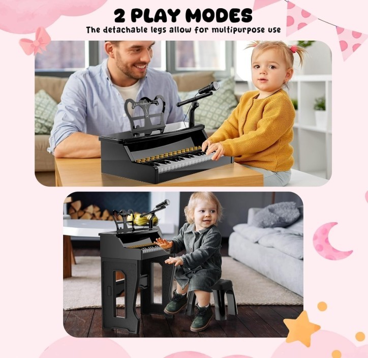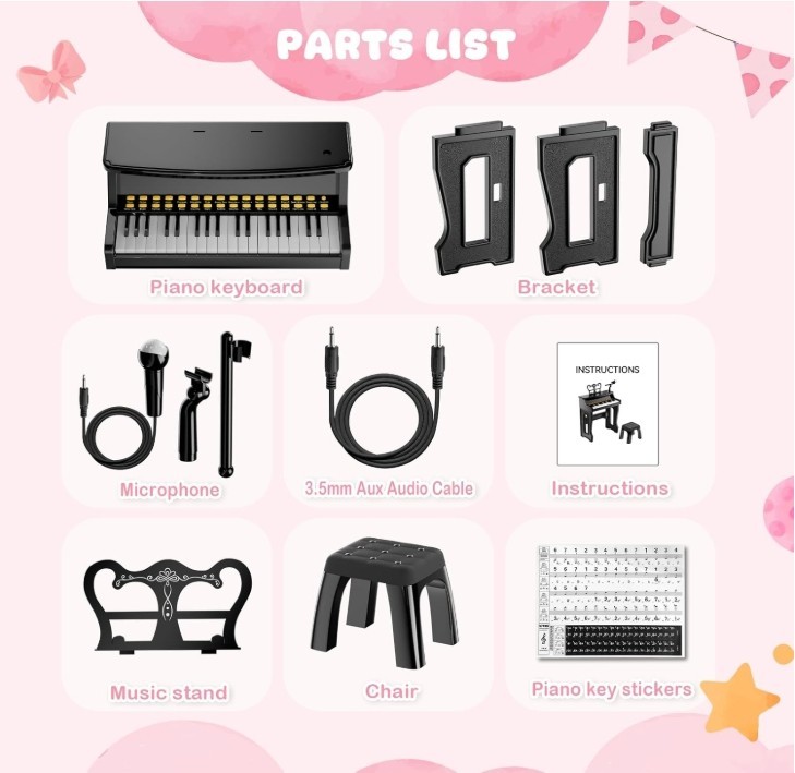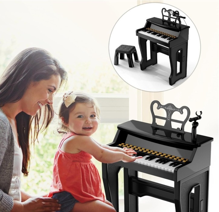 Kids 37-Key Electronic Piano Keyboard w/ Mic Stool Music Toy Educational Black
