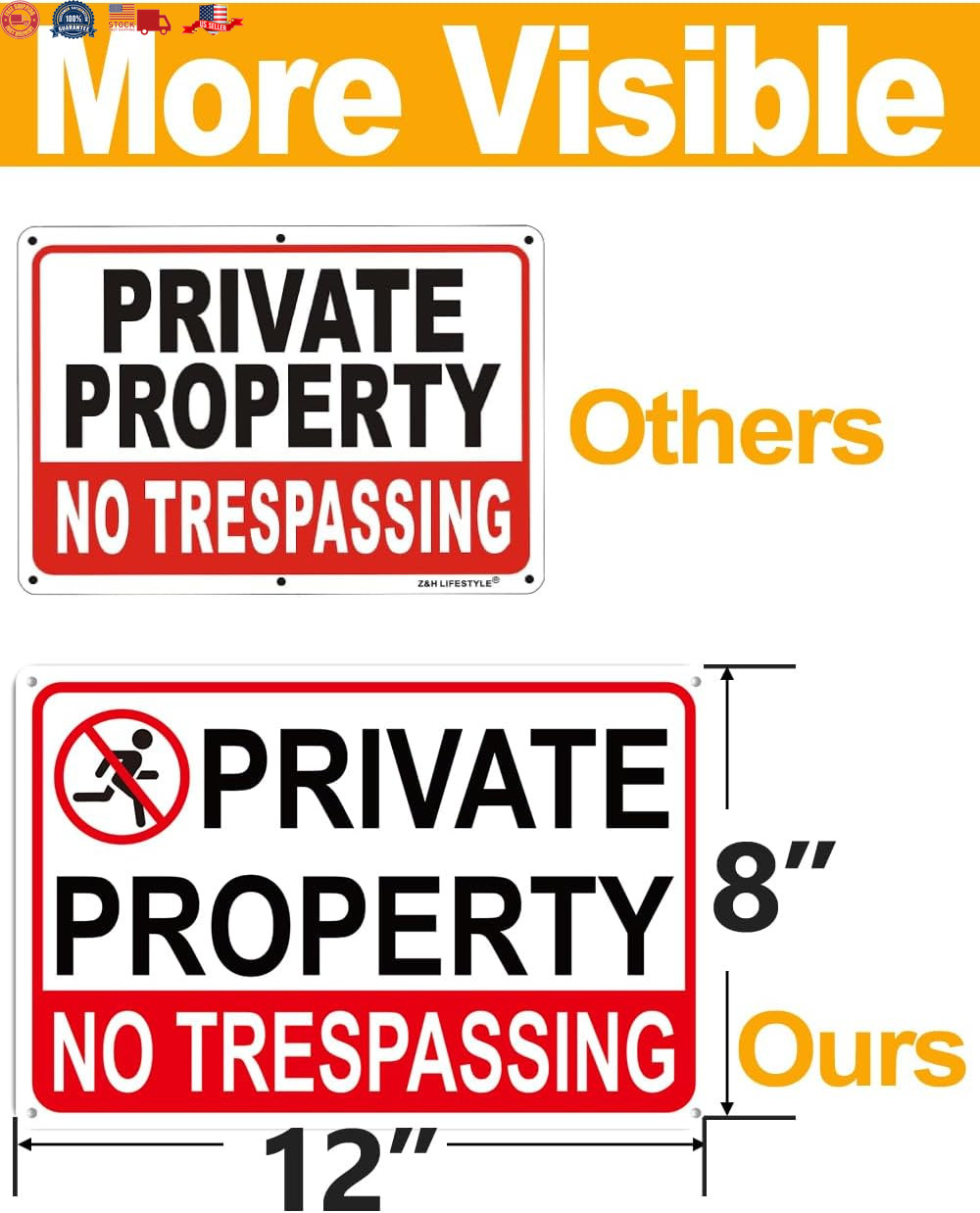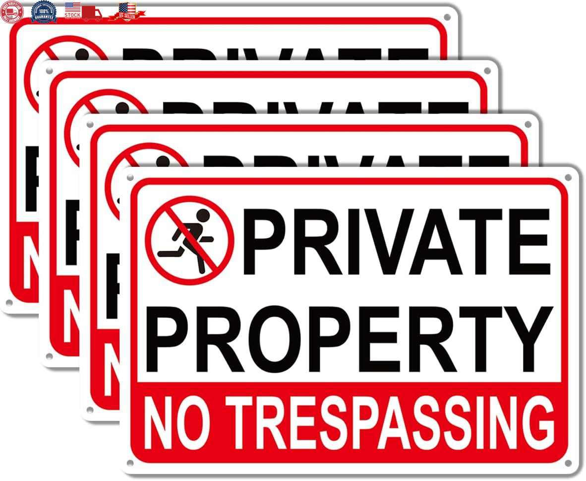 4 Pack Large No Tresspassing Sign Private Property 8X12 Inch Rust Fre