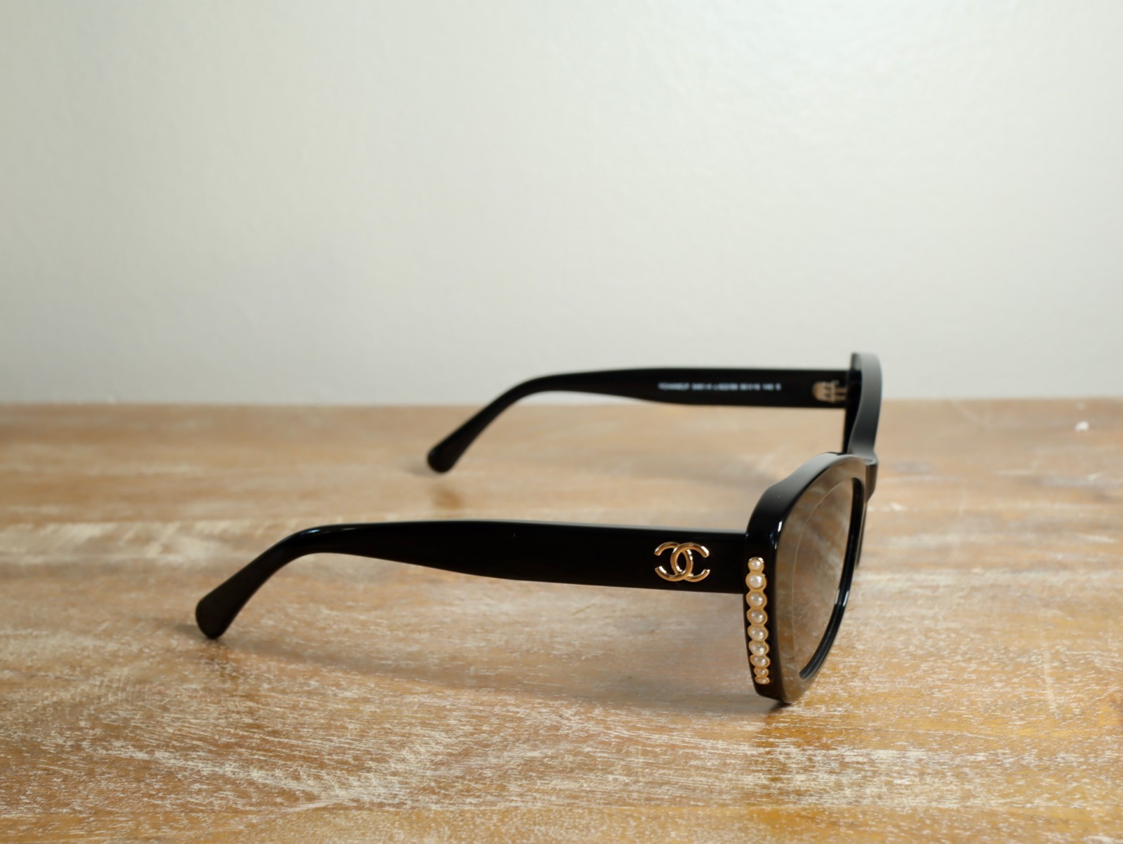 как выглядит CHANEL 5481H Urban Vintage Cat Eye Pearl Sunglasses 56mm Black/Gray Lens 100 UV фото