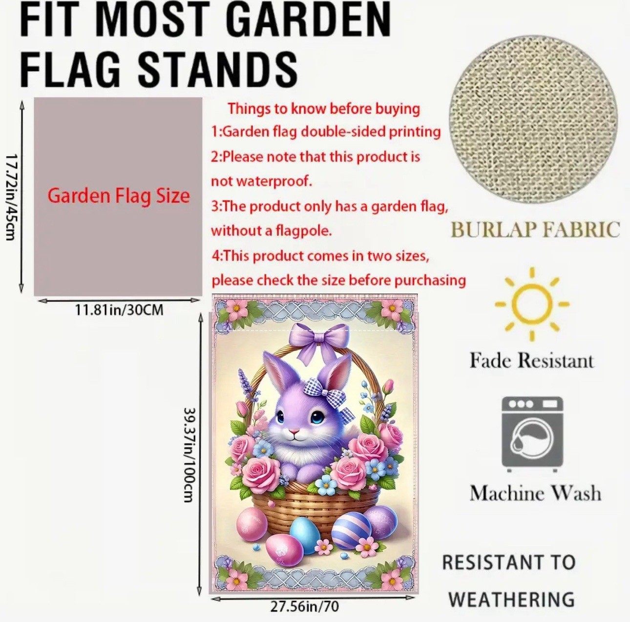 как выглядит Garden Flag, 12 X 18 , Purple Easter Bunny, Thick Burlap Polyester Double-Sided фото