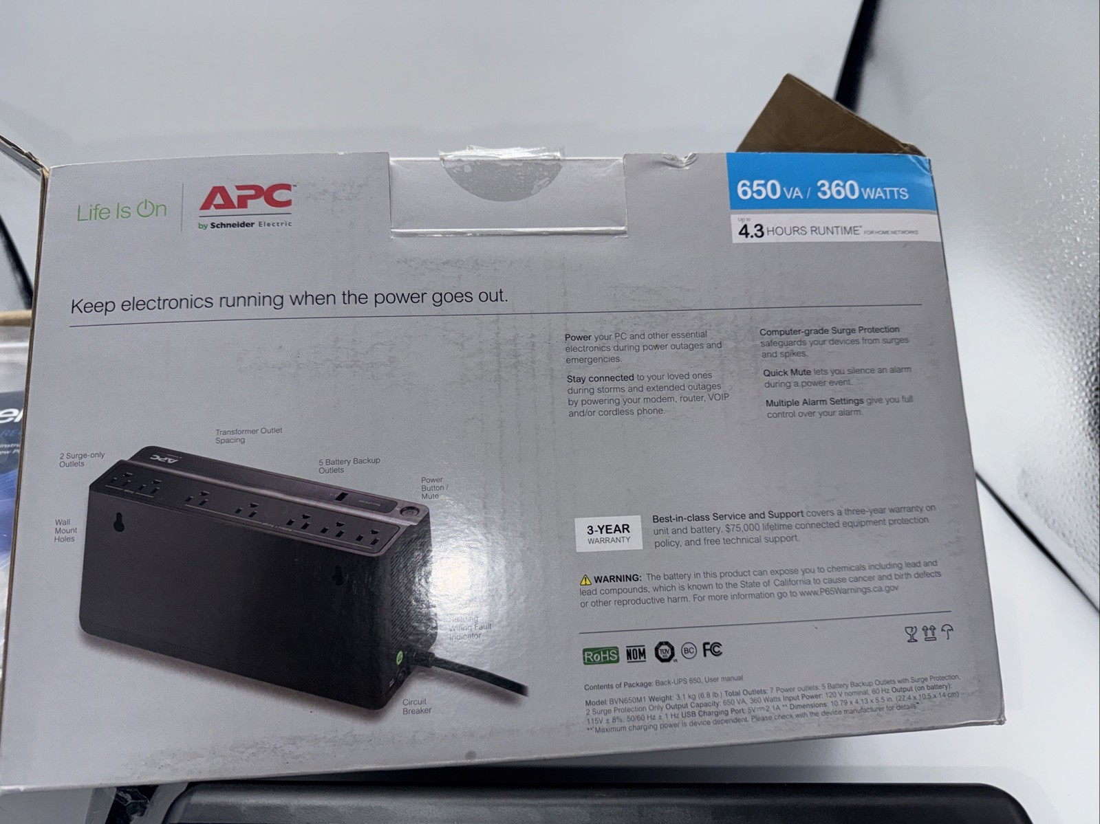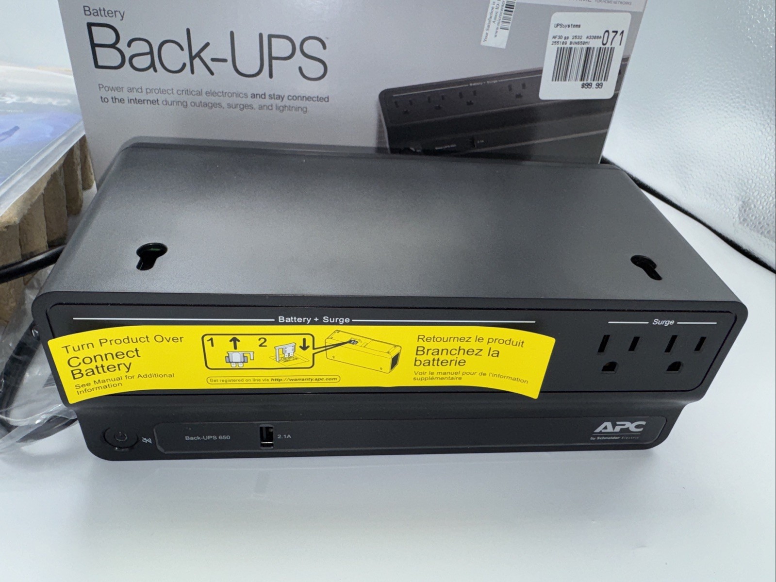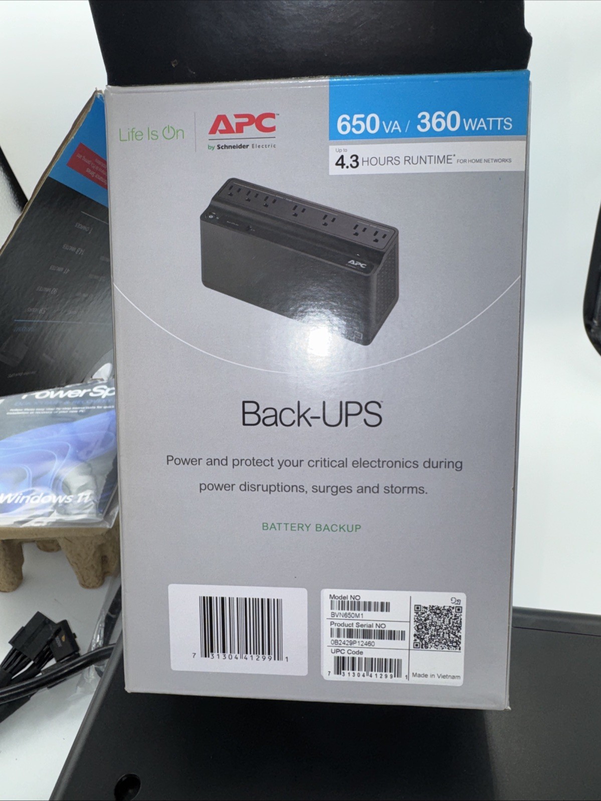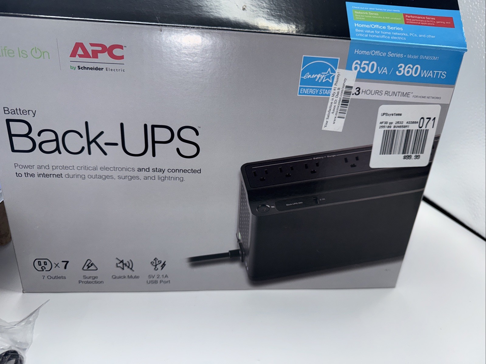 APC 650VA Battery Back-Up System UPS 7 Outlet / 1 USB Surge Protector BVN650M1