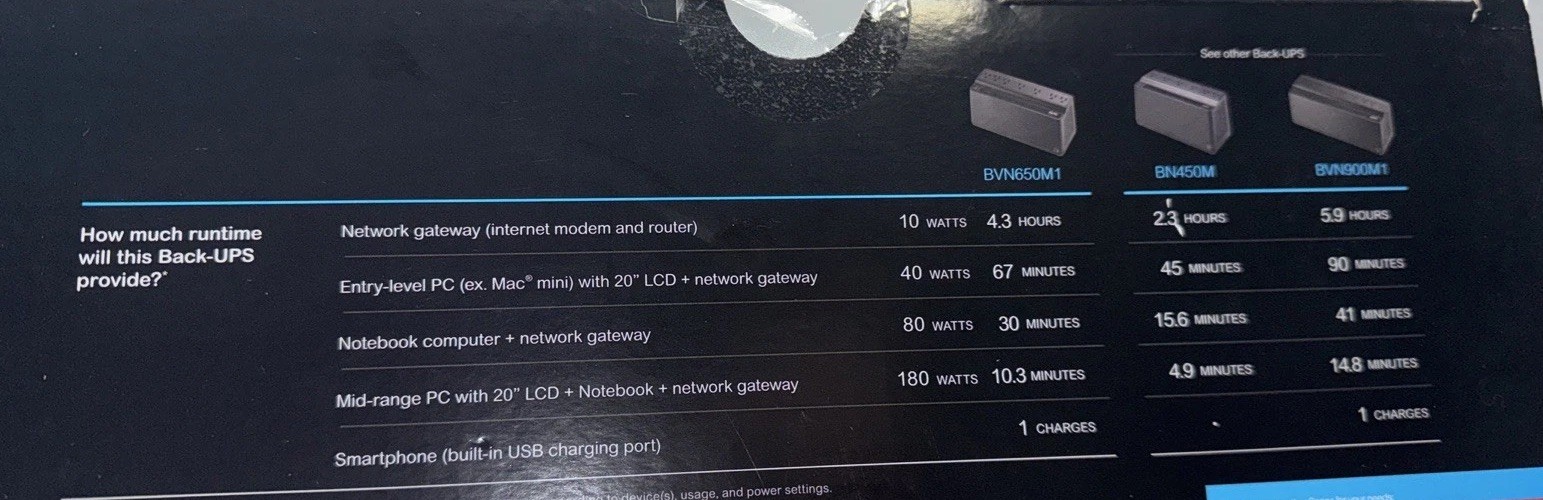 как выглядит APC 650VA Battery Back-Up System UPS 7 Outlet / 1 USB Surge Protector BVN650M1 фото