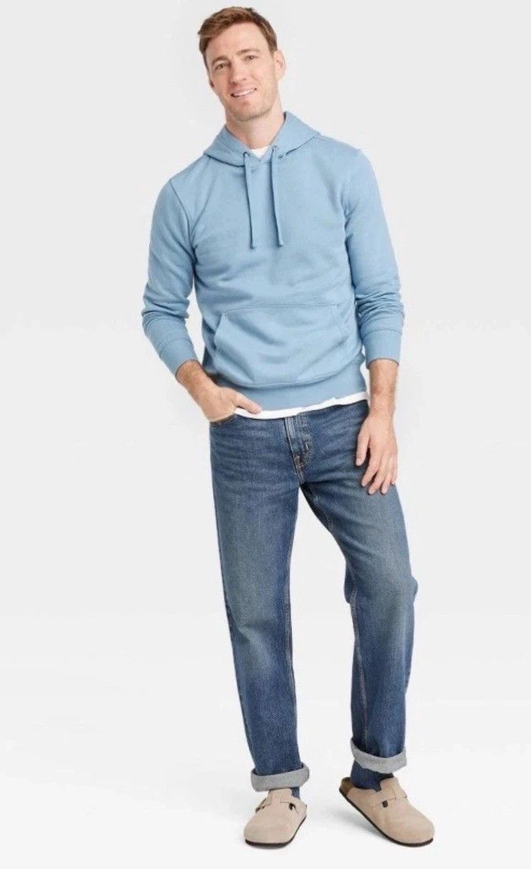 как выглядит Goodfellow Co Ultra Soft Core Fleece Mens Pullover Hoodie Light Blue Sz M фото