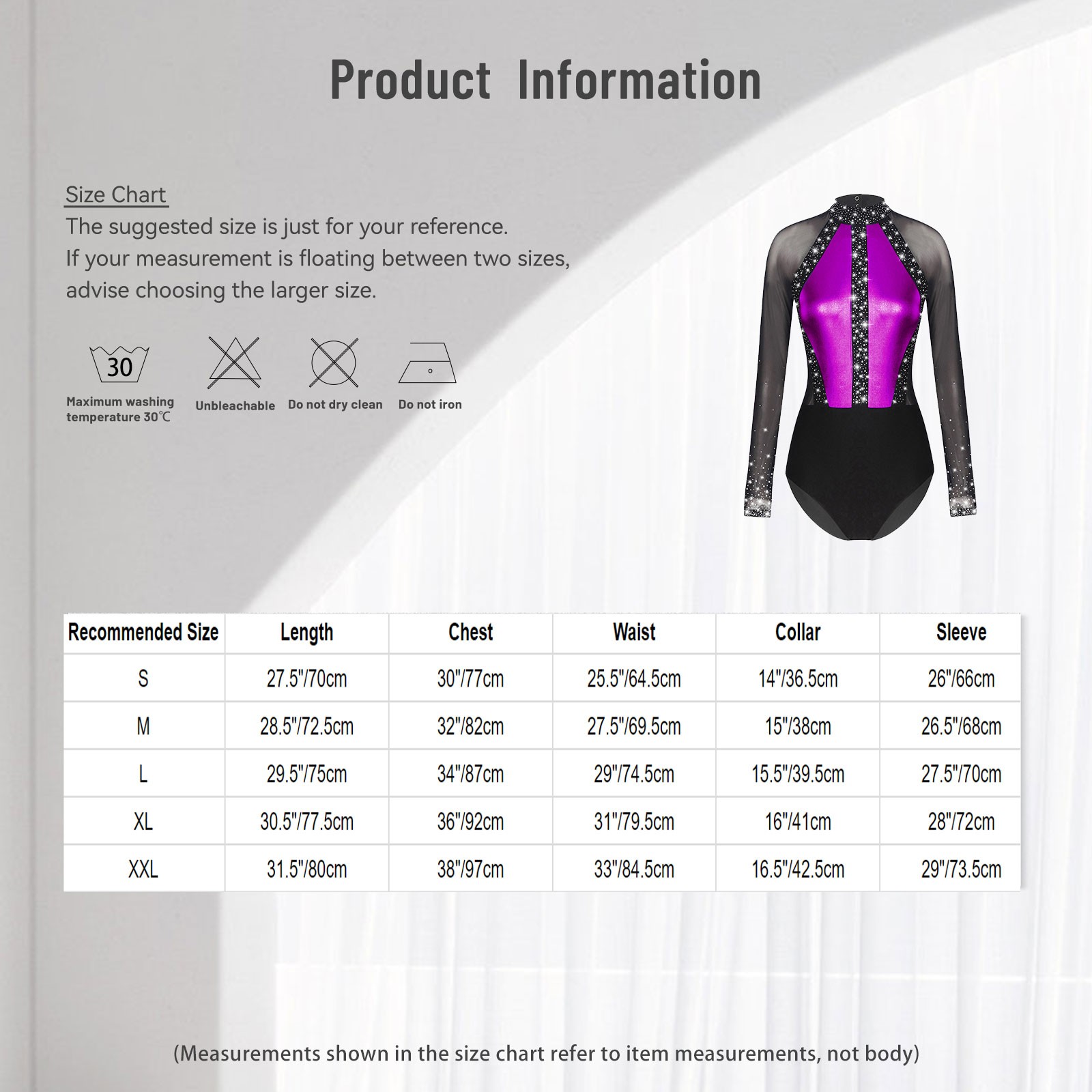 Womens Leotard Yoga Gymnastics Adult Ballet Performance Bodysuit Rhinestones