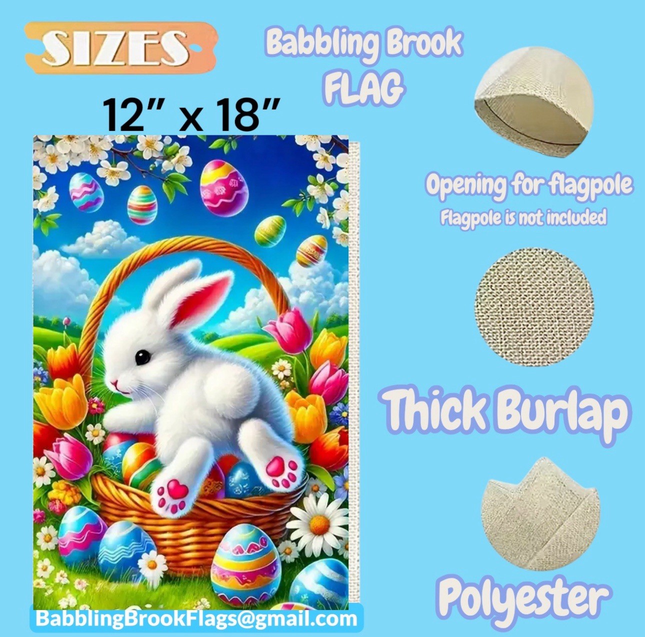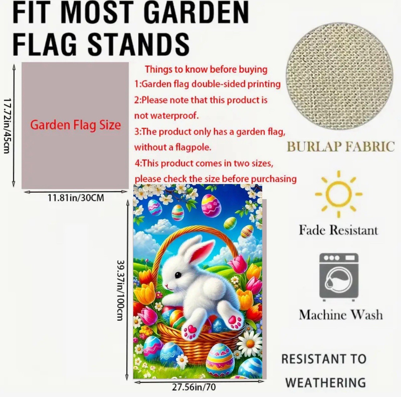 Garden flag, 12 x 18 , Easter Bunny, thick burlap polyester double-sided