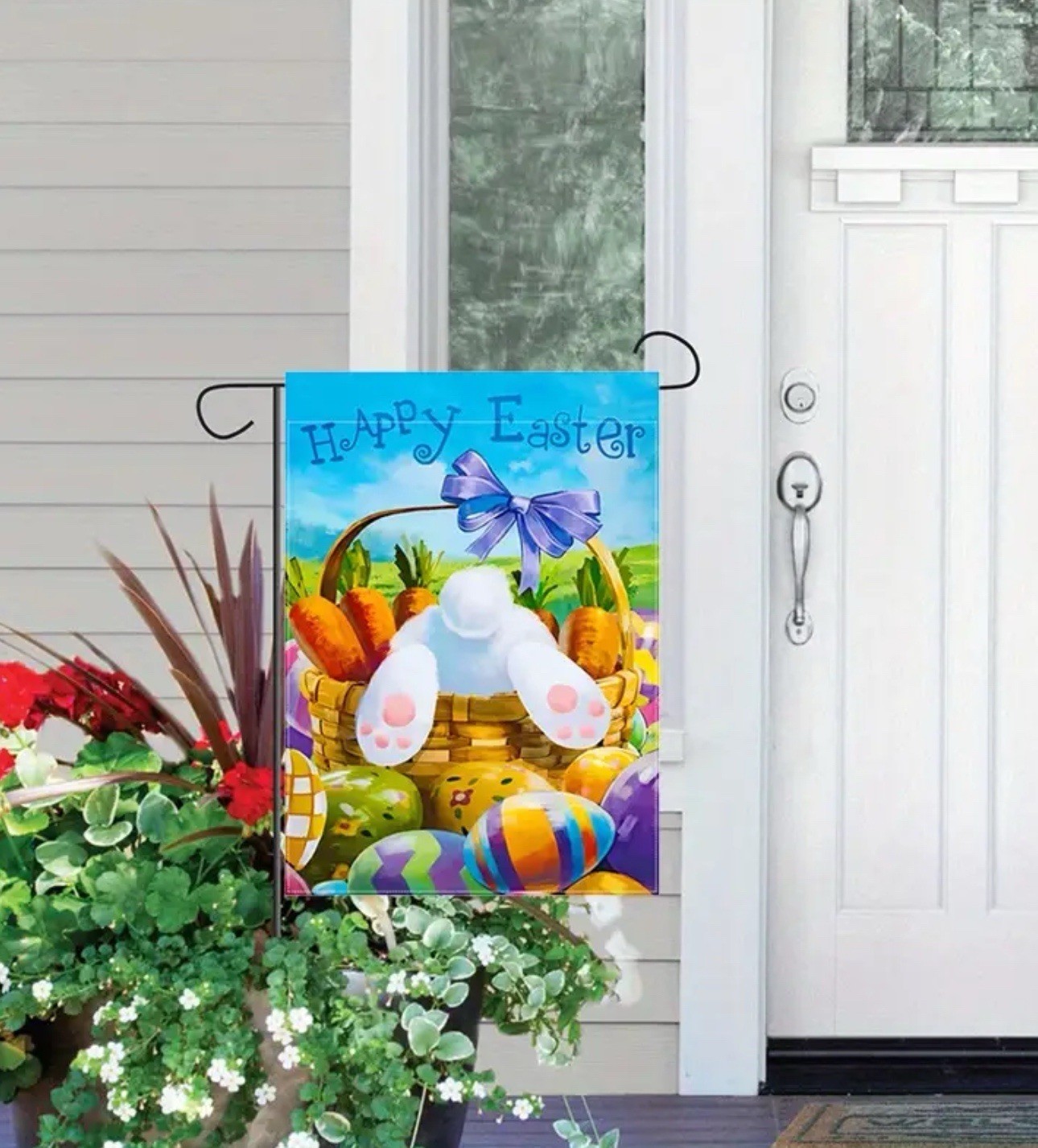 как выглядит Garden flag, 12 x 18 , Easter bunny bottom, thick burlap polyester double-sided фото