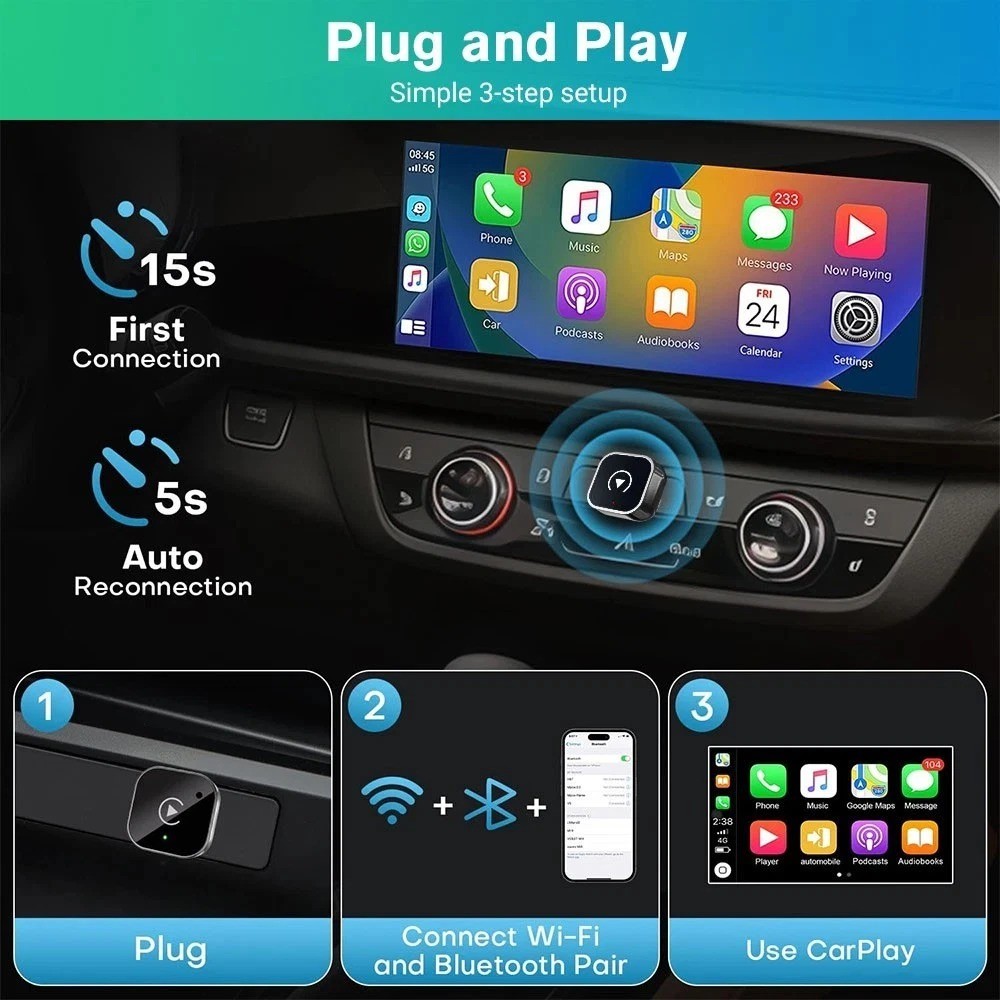 • USB Auto Wireless CarPlay Adapter For Apple Android Wireless Dongle Plug Play
