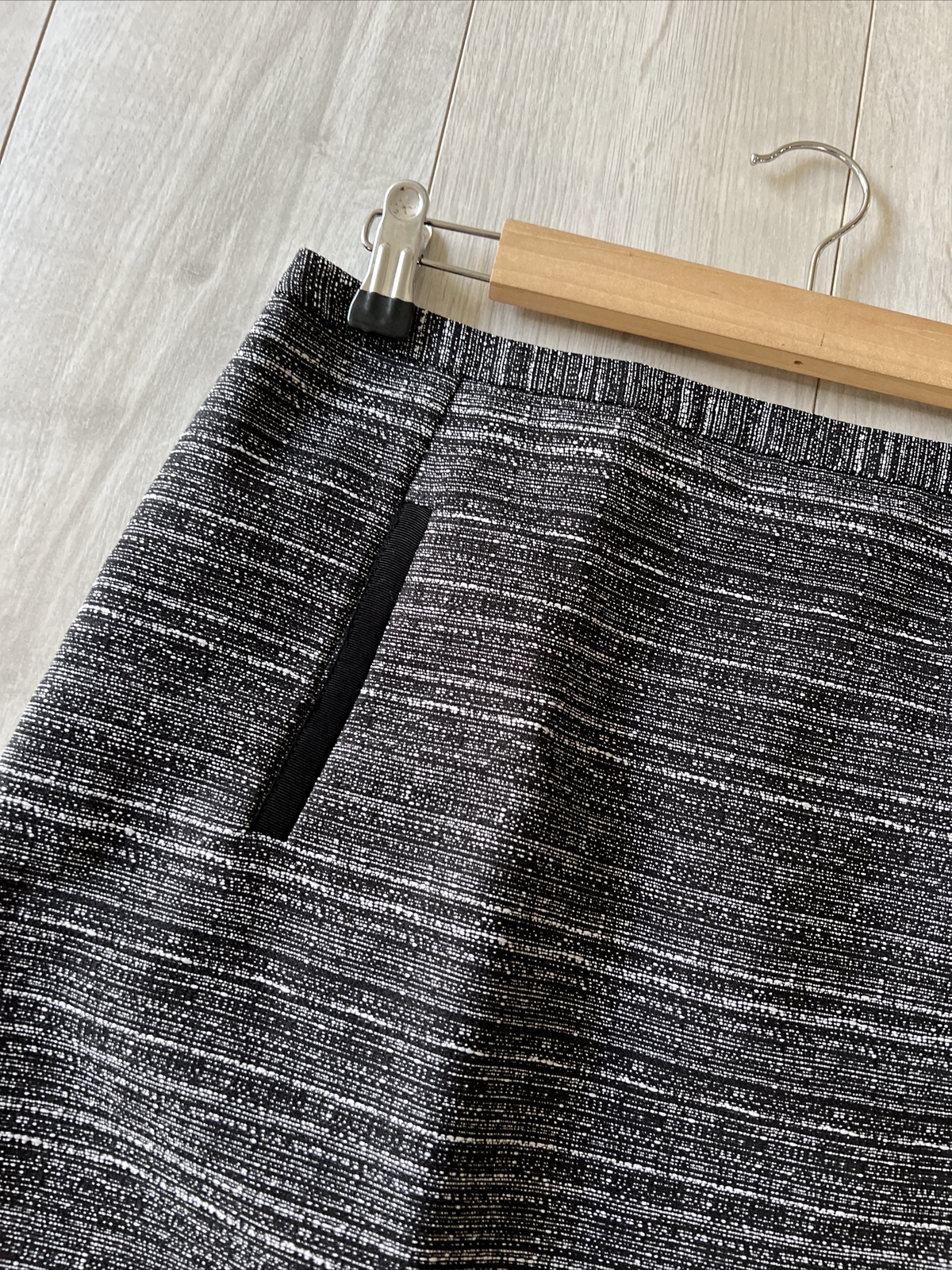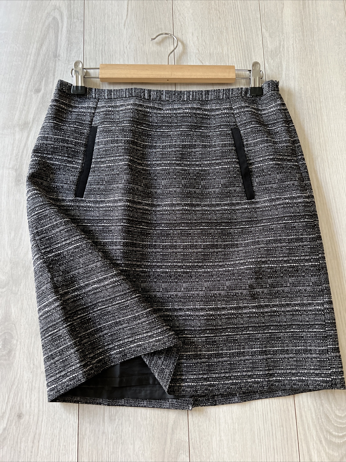 как выглядит Ann Taylor Loft Black White Light Tweed S/Pocket Pencil Skirt Sz 4 фото