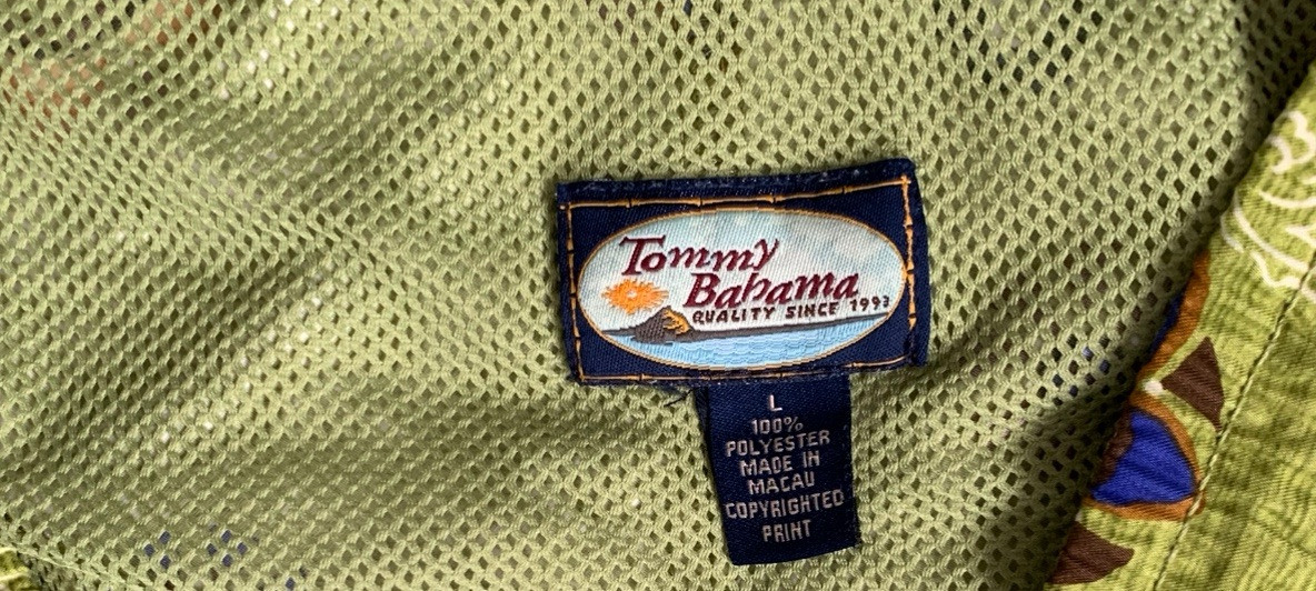 как выглядит Tommy Bahama Mens LARGE Hawaiian Swim Trunks Green Summer Vacation Cruise Pool фото