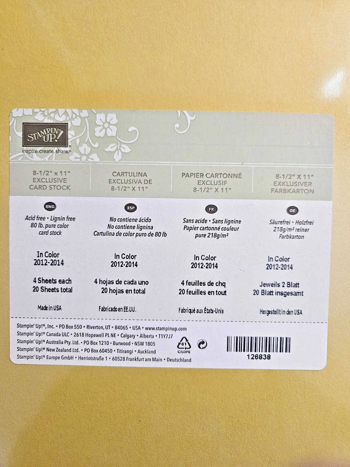 Stampin Up 8-1/2 x 11 Cardstock 2012-2014 In Color 20 full sheets NEW Retired
