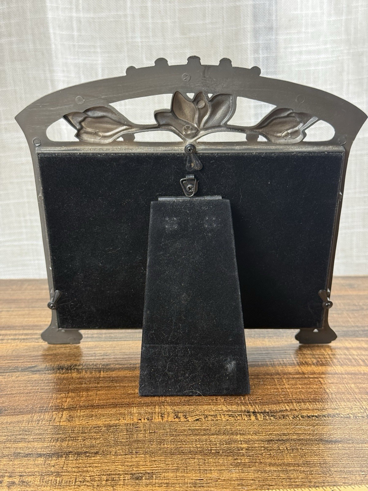 Antiqued Silver Color Floral Picture Frame 5x7 Photo Beaded Elegant Table Top