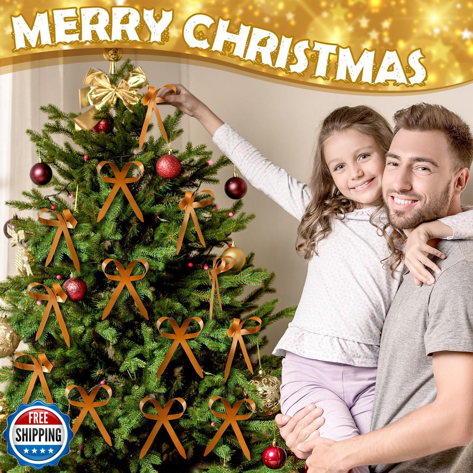 Daifunli 12 Pcs Khaki Metal Christmas Bow Ornaments for Christmas Tree Garlan