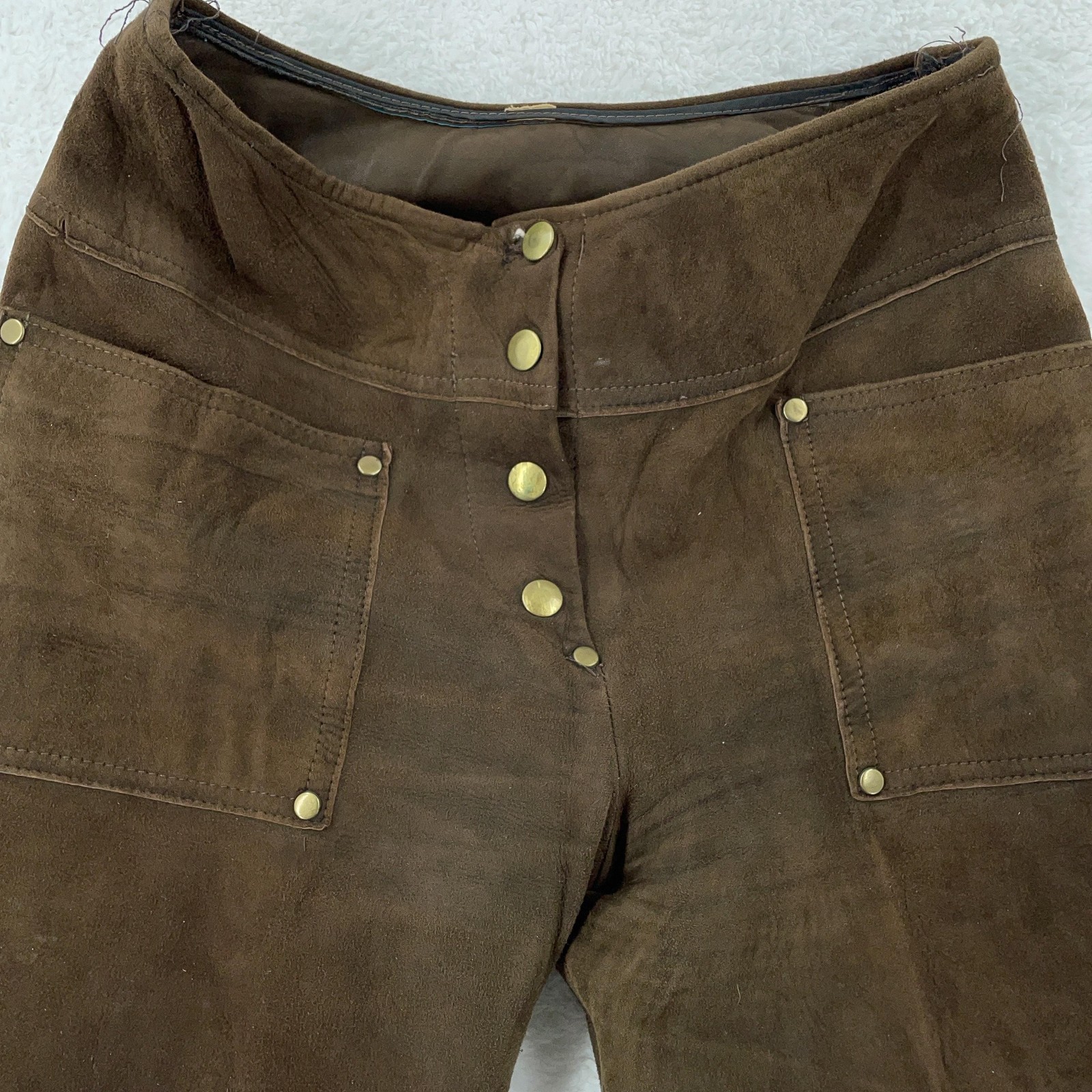 как выглядит Vintage Brown Suede Leather Pants 26x29 Flare Leg Snap Front Patch Pockets Boho фото