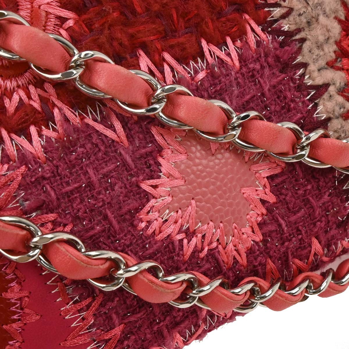 Chanel Pink Tweed Single Flap Patchwork Shoulder Bag 134656