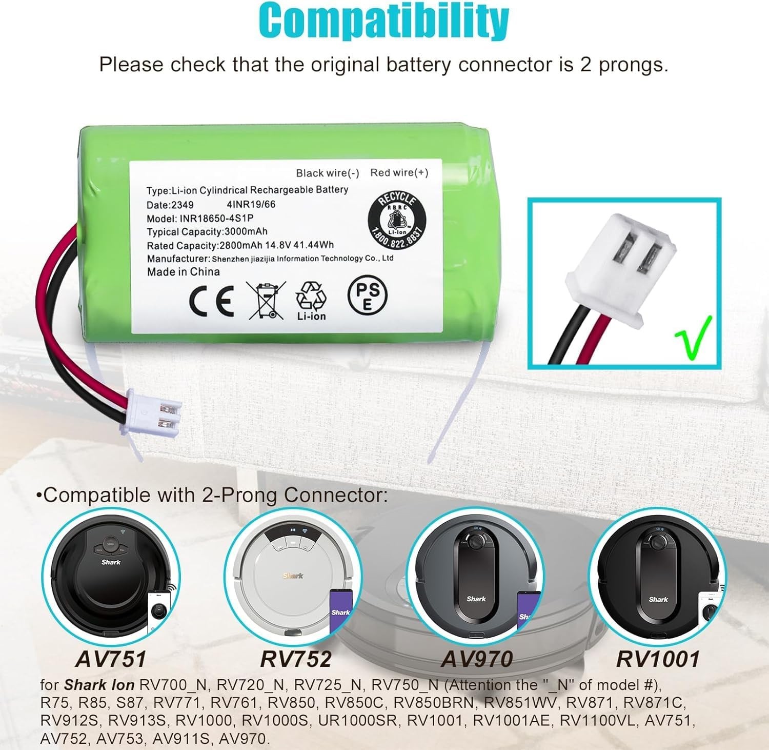 RVBAT850 41.44Wh Battery Replacement for Shark Ion R75 RV761 RV850C RV1000S