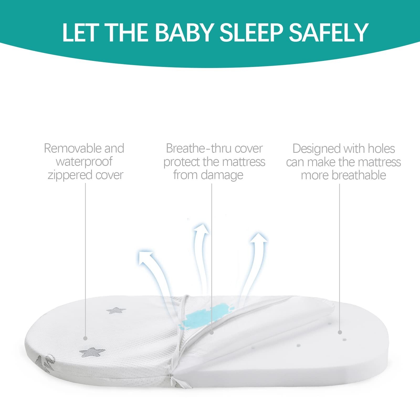 Bassinet Mattress Pad 15x 30, Oval Shaped with Removal Zippered Cover, Wate...