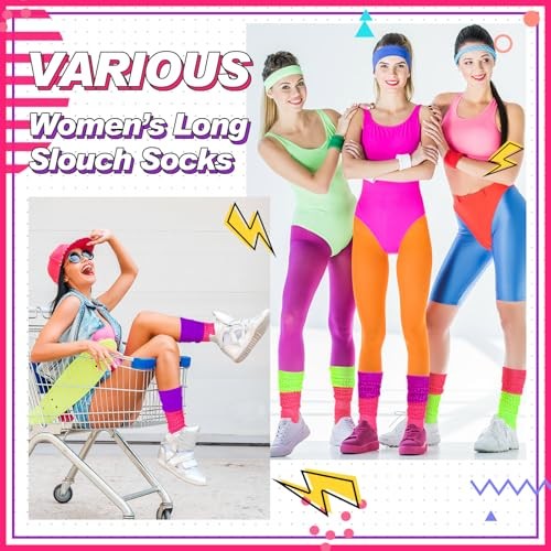 как выглядит Geyoga Neon Slouch Socks,80s 90s Neon Women