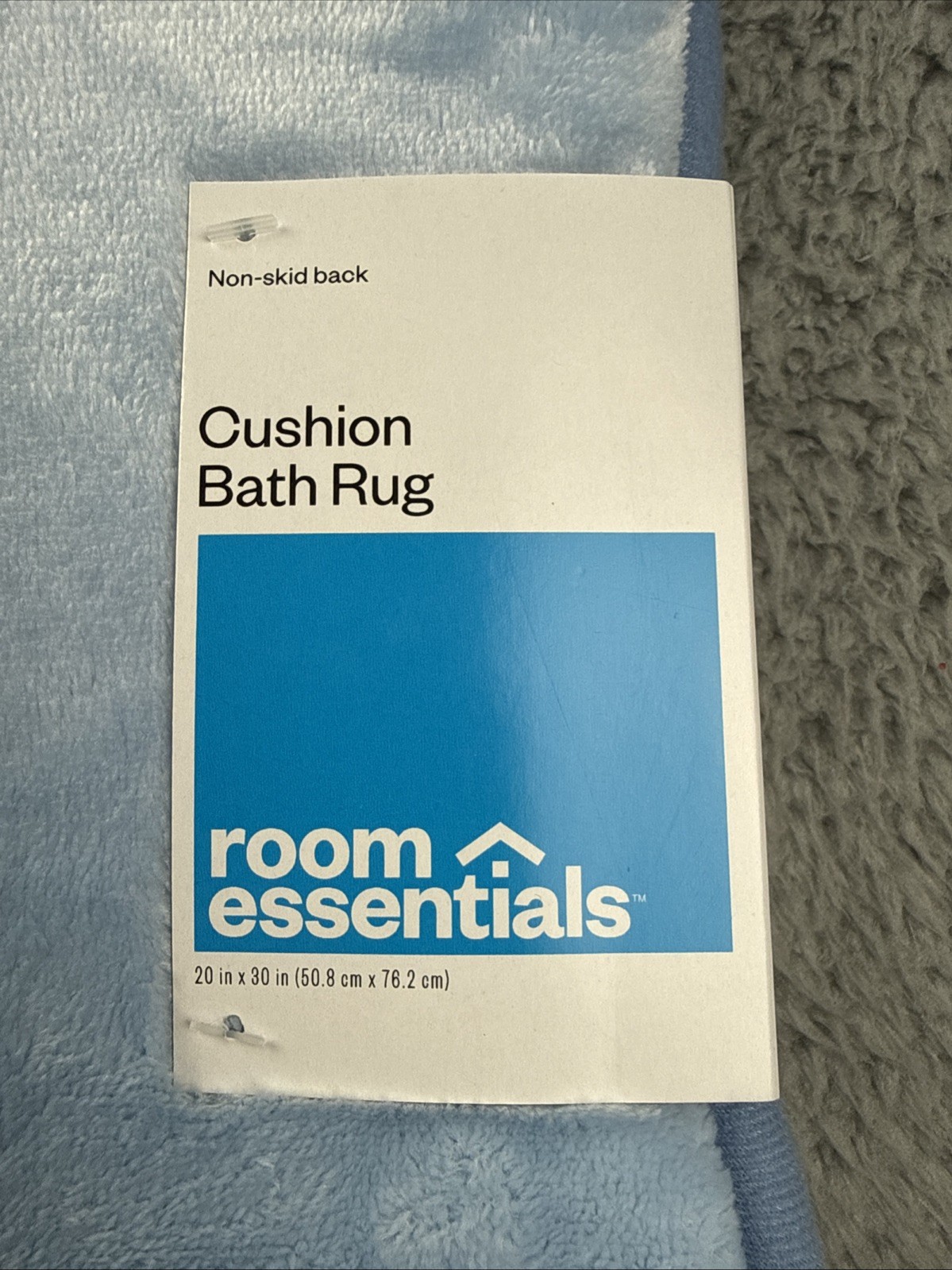 Room Essentials Cushion Bath Rug 20x30 Blue Non-Skid Back Plush Bathroom Mat