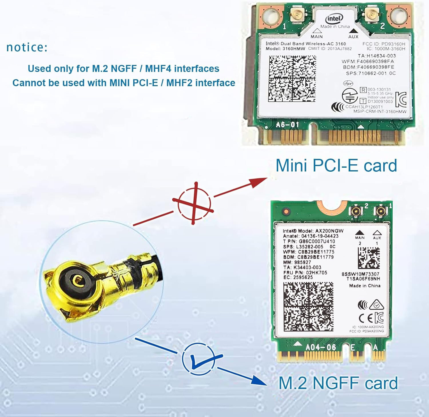 2Pack WiFi Antenna Dual Band RP-SMA to MHF4 30cm Cable for WiFi Adapter Laptop