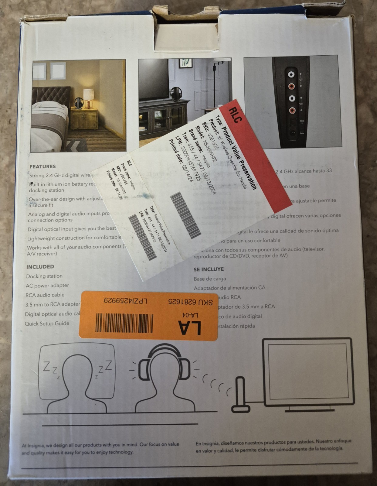 Insignia NS-HAWHP2 RF Wireless Over the Ear Headphones - Black COMPLETE
