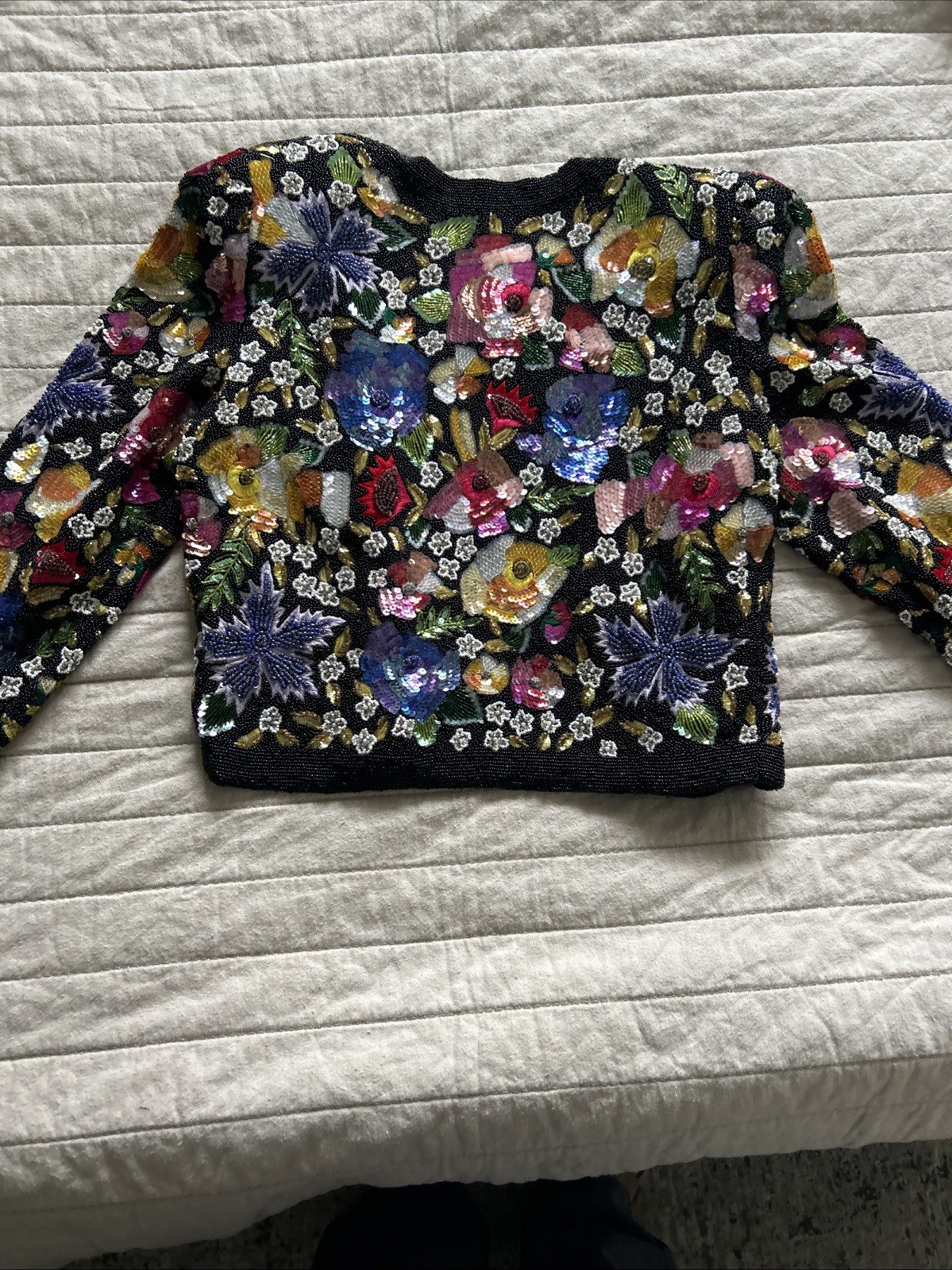 как выглядит Lawrence Kazar Vintage Sequin Beaded Pearl Jacket Size S фото