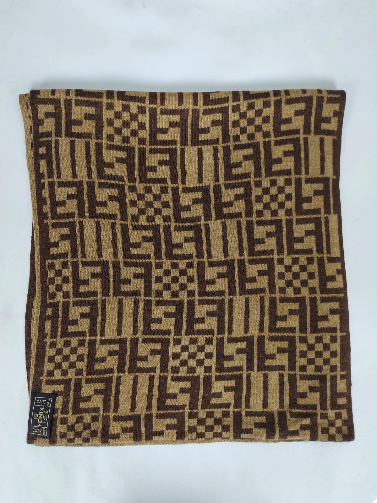 Fendi genuine vintage patterned Brown / Beige Wool winter Scarf Scarves