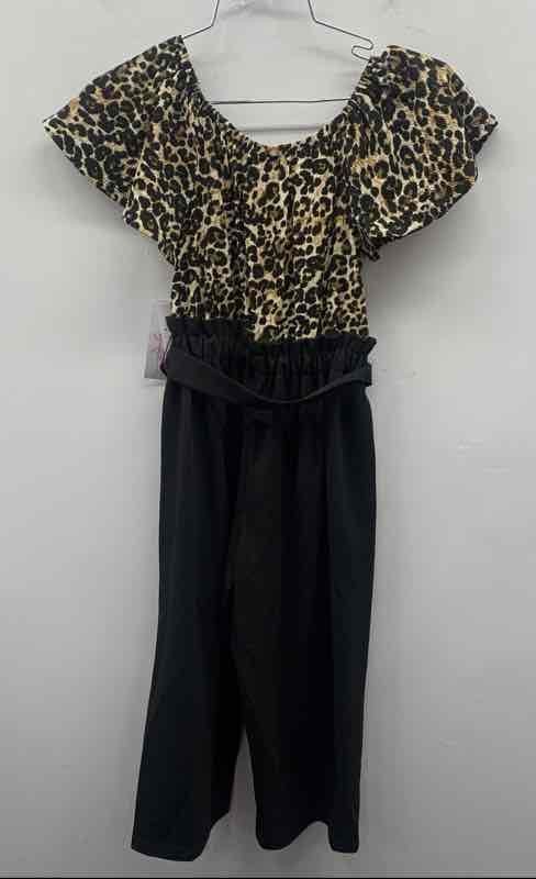 NWT Bonnie Jean Girls' Leopard Off Shoulder Paperbag Waist Jumpsuit Size 8