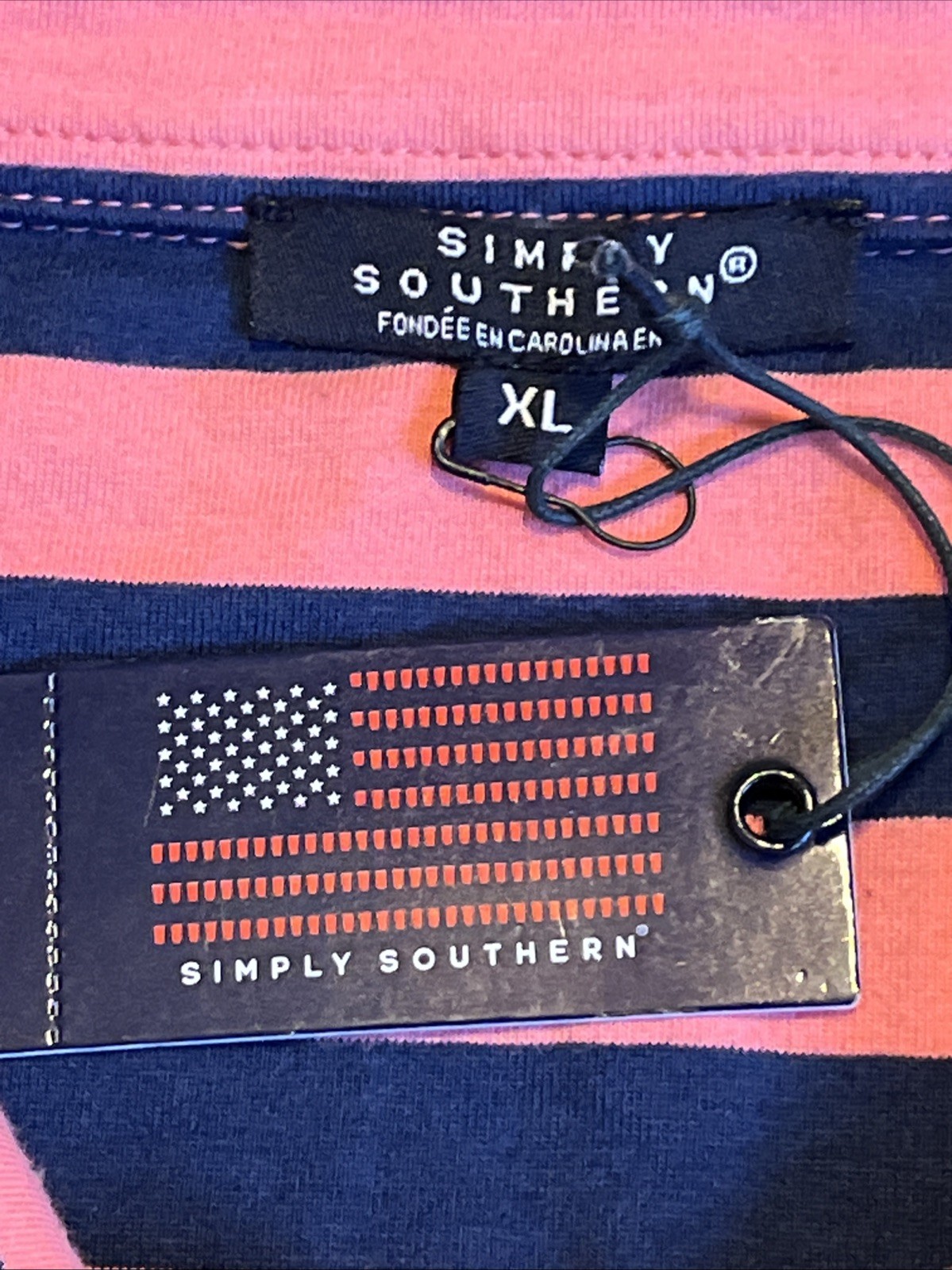 NWT Men s Simply Southern Polo Shirt Navy Blue And Pink Stripes XL