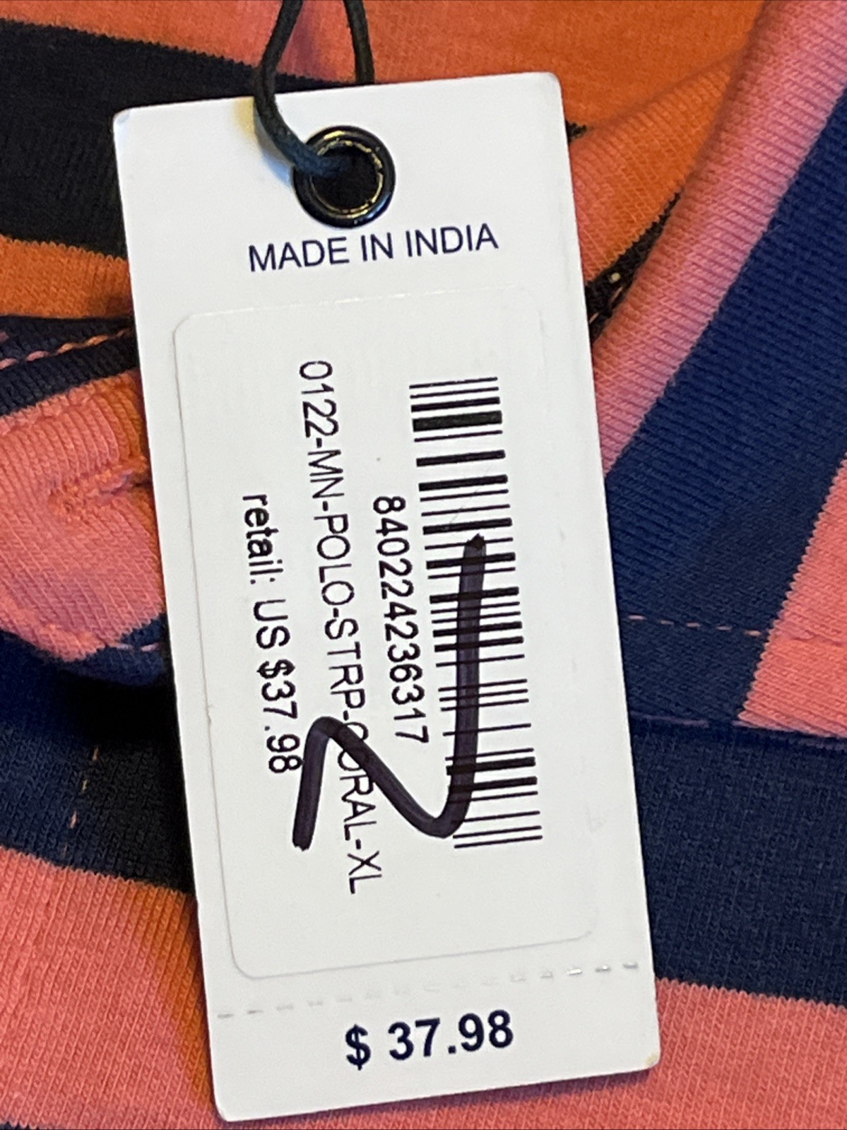 как выглядит NWT Men s Simply Southern Polo Shirt Navy Blue And Pink Stripes XL фото