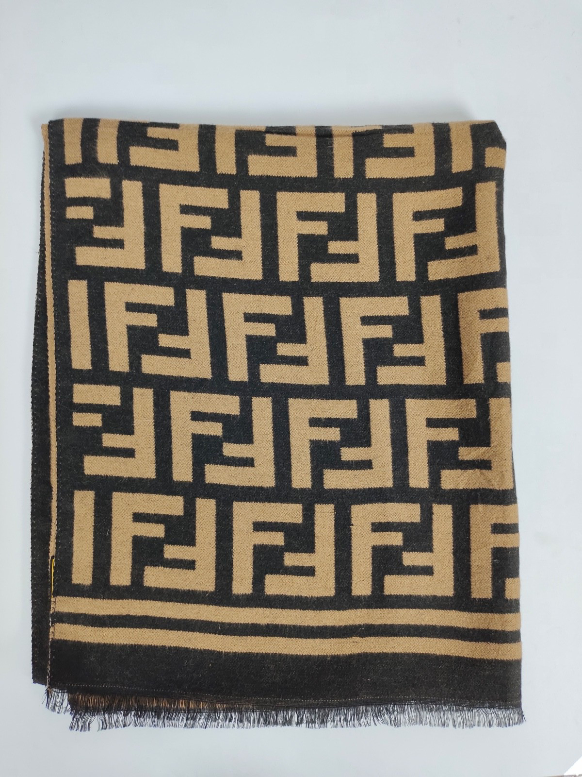 как выглядит FENDI genuine vintage Black / Brown Wool wrap shawl winter scarf scarves фото