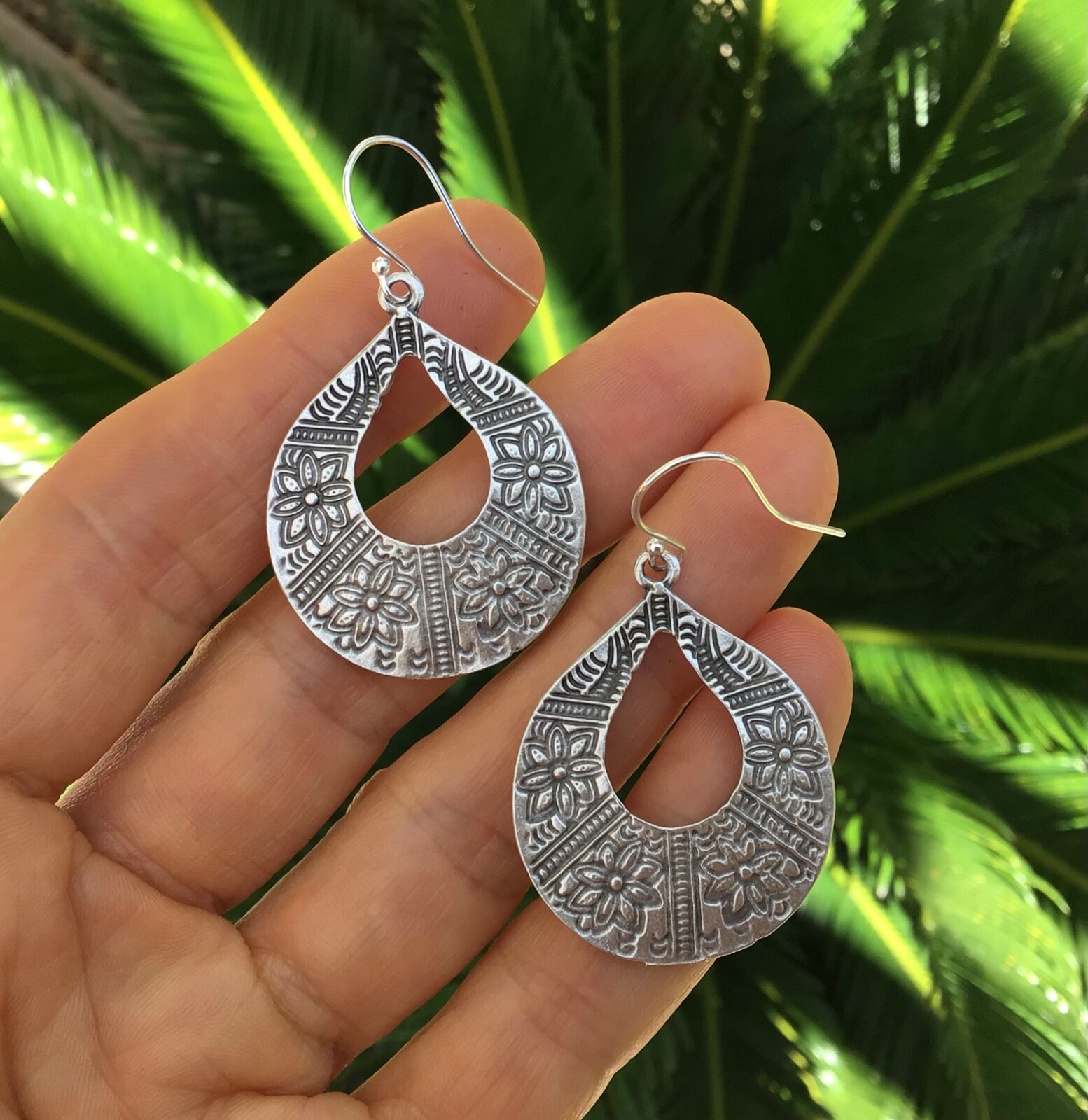 как выглядит Artisan Sterling Silver Sundance Charm hammered Earrings floral stamp jewelry фото