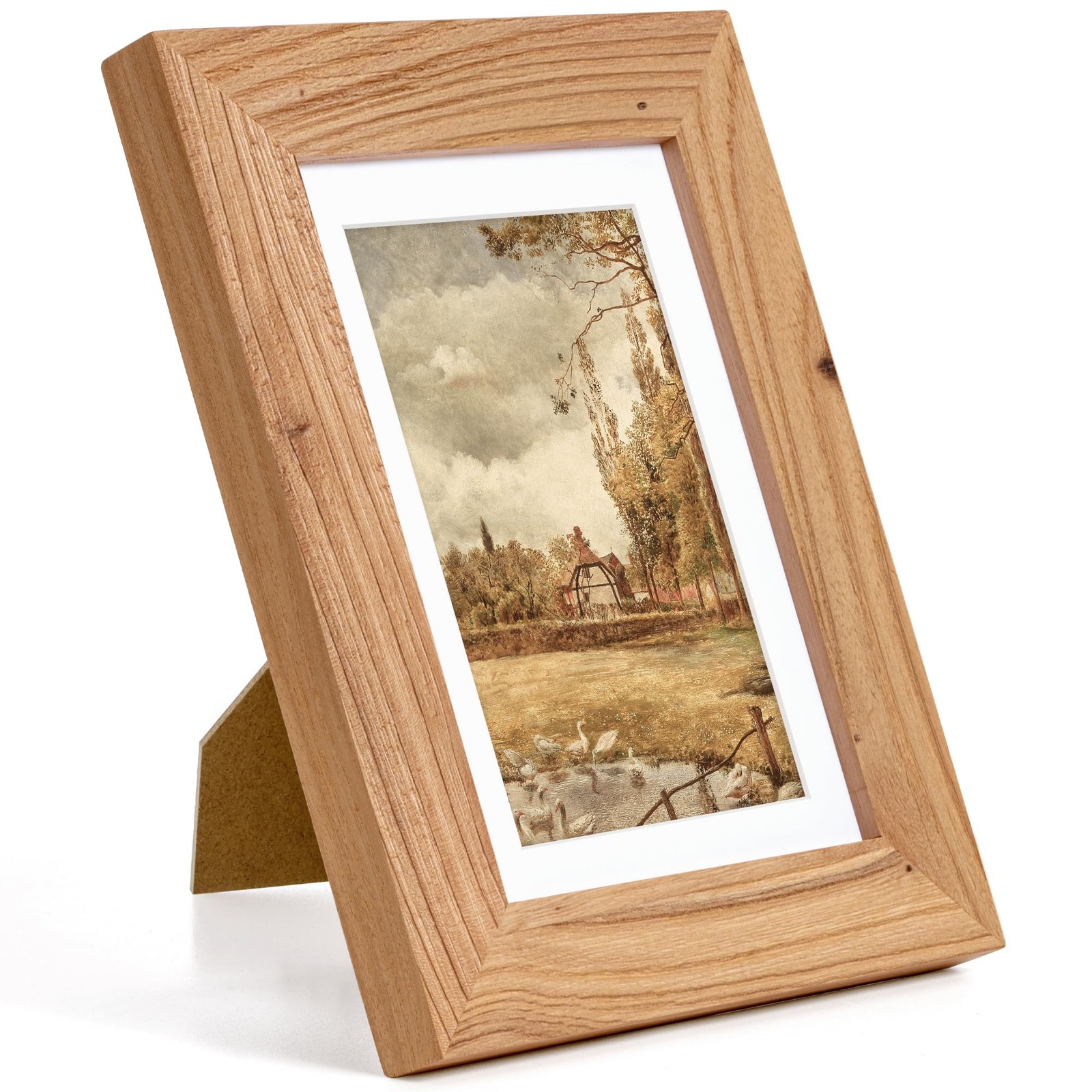 как выглядит 5x7 Picture Frame with Mat for 4x6 Photo, Solid Elm Wood Tempered Glass, Ru... фото