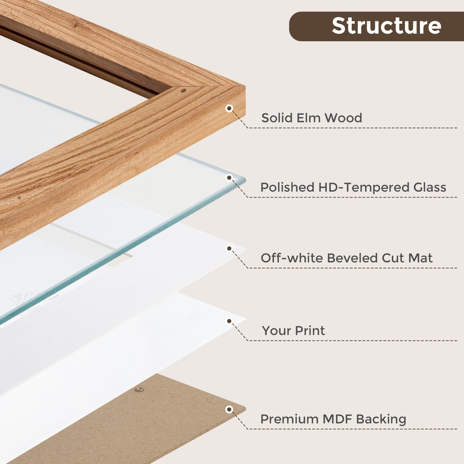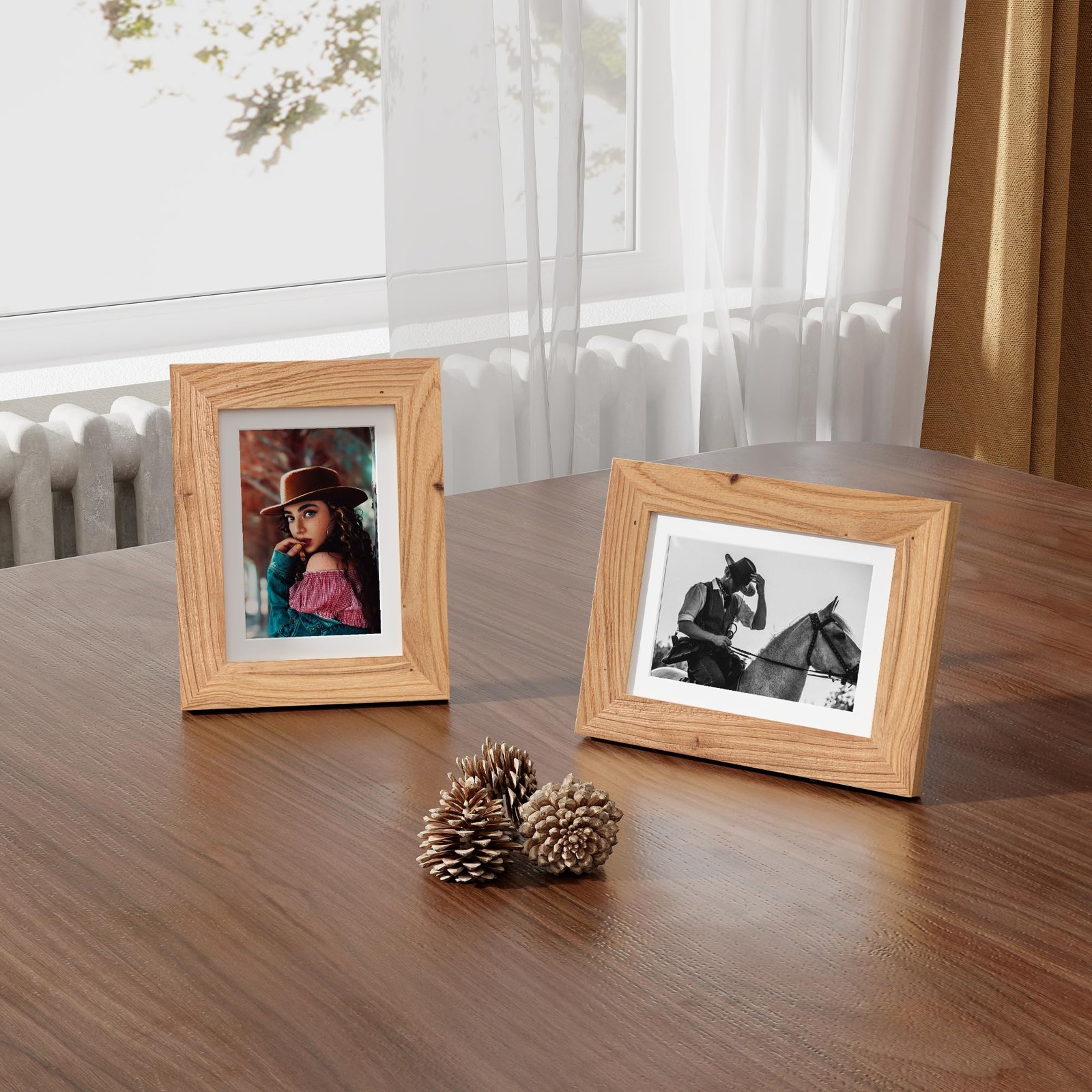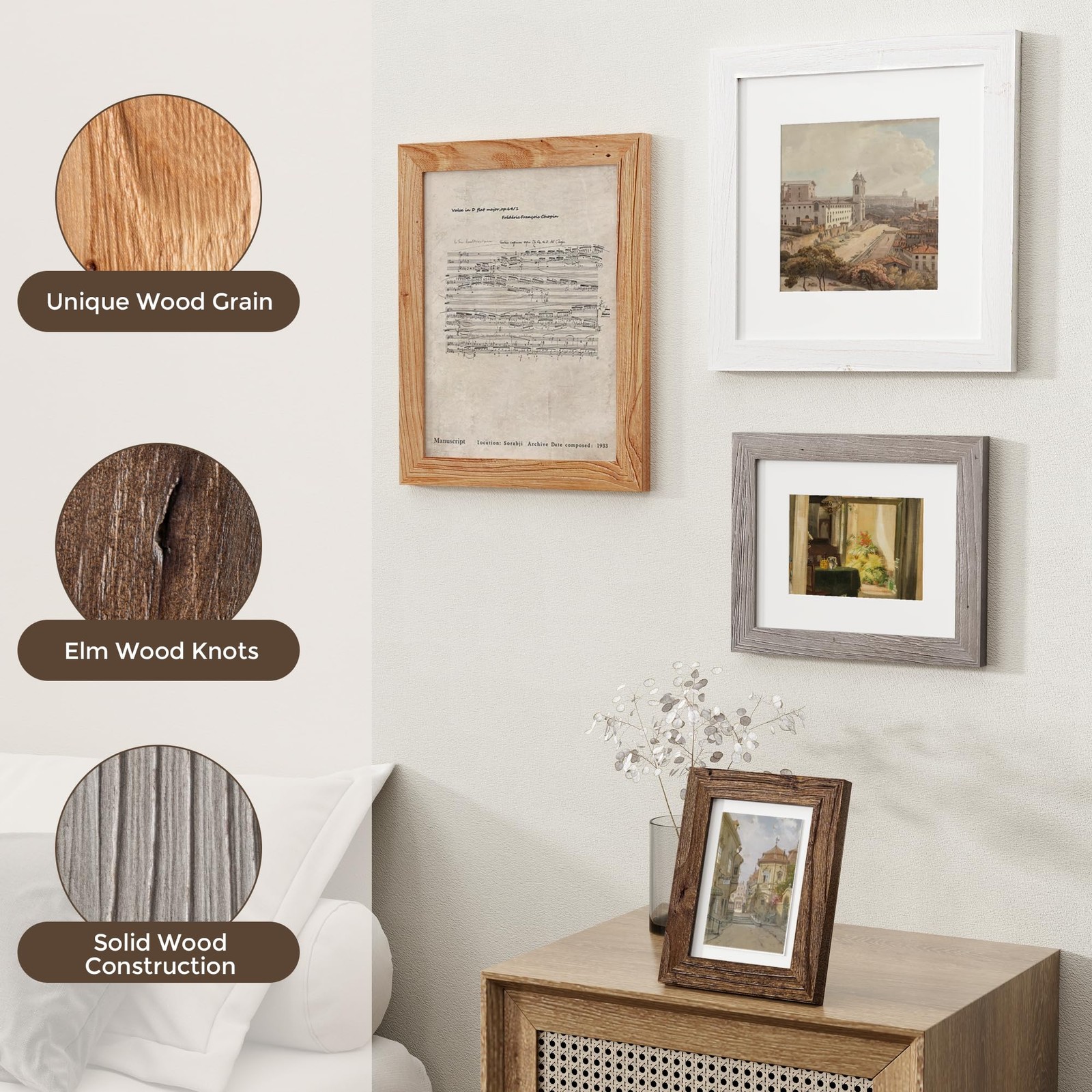 5x7 Picture Frame with Mat for 4x6 Photo, Solid Elm Wood Tempered Glass, Ru...