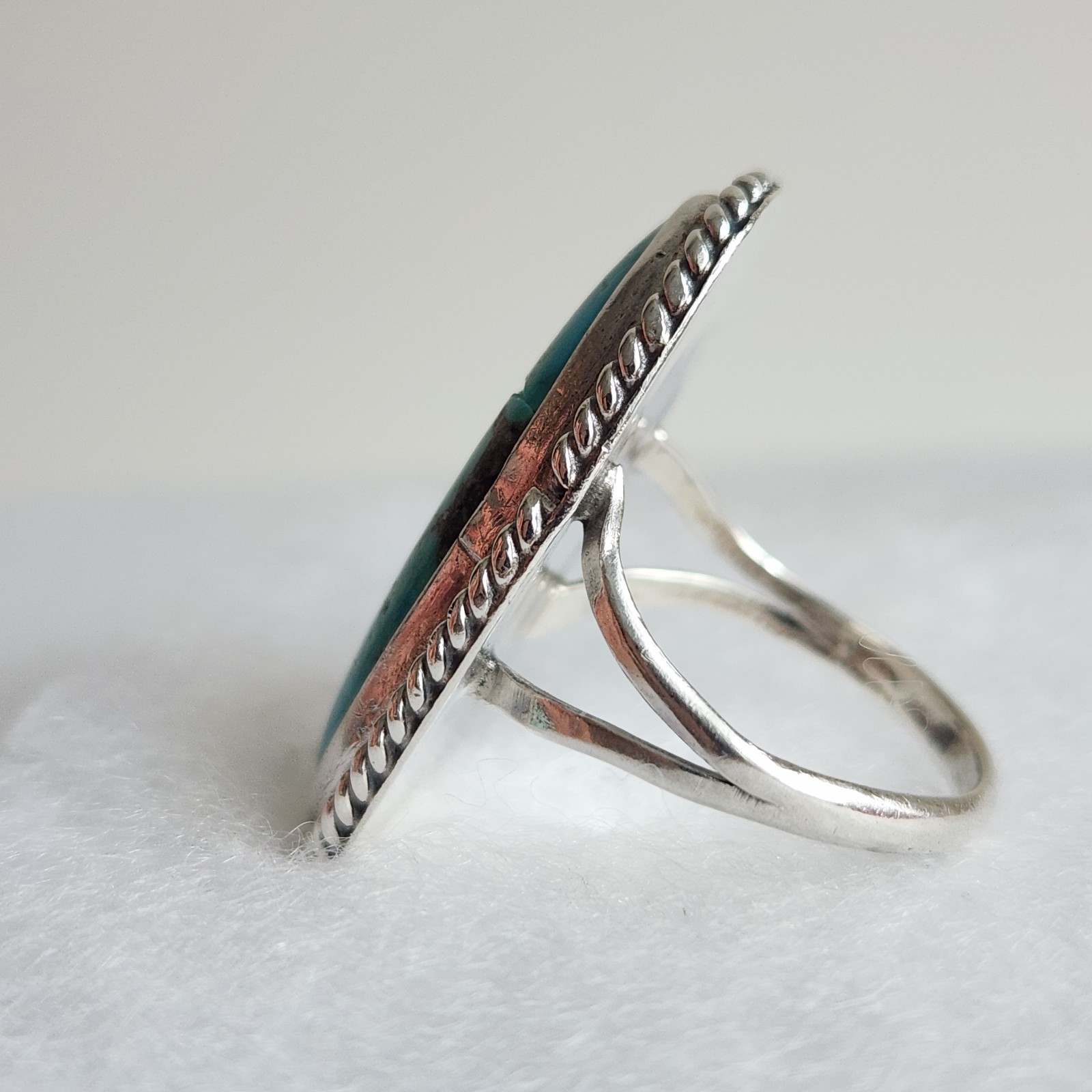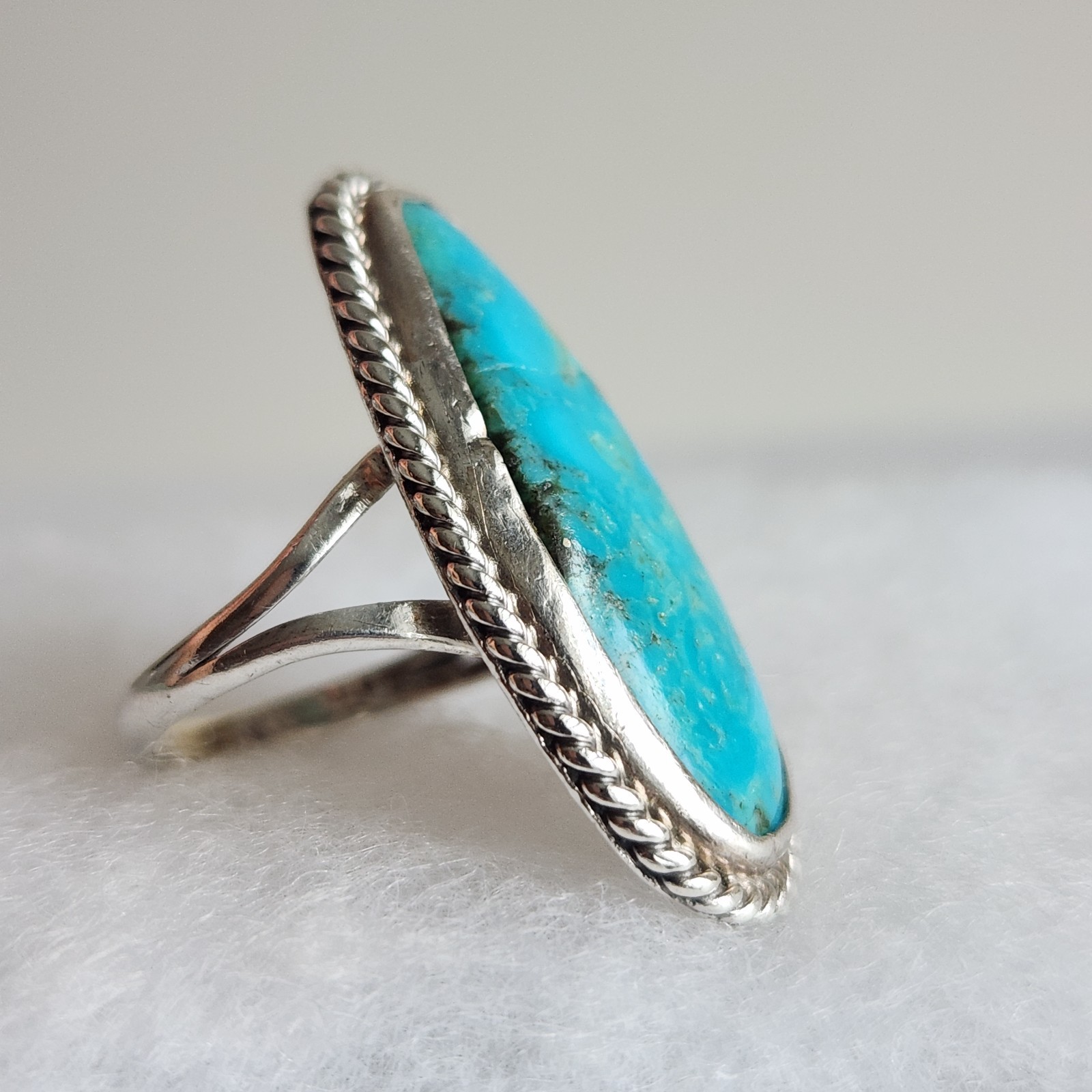 Size 8 Sterling Silver Turquoise Long Oval Statement Ring 7.2g