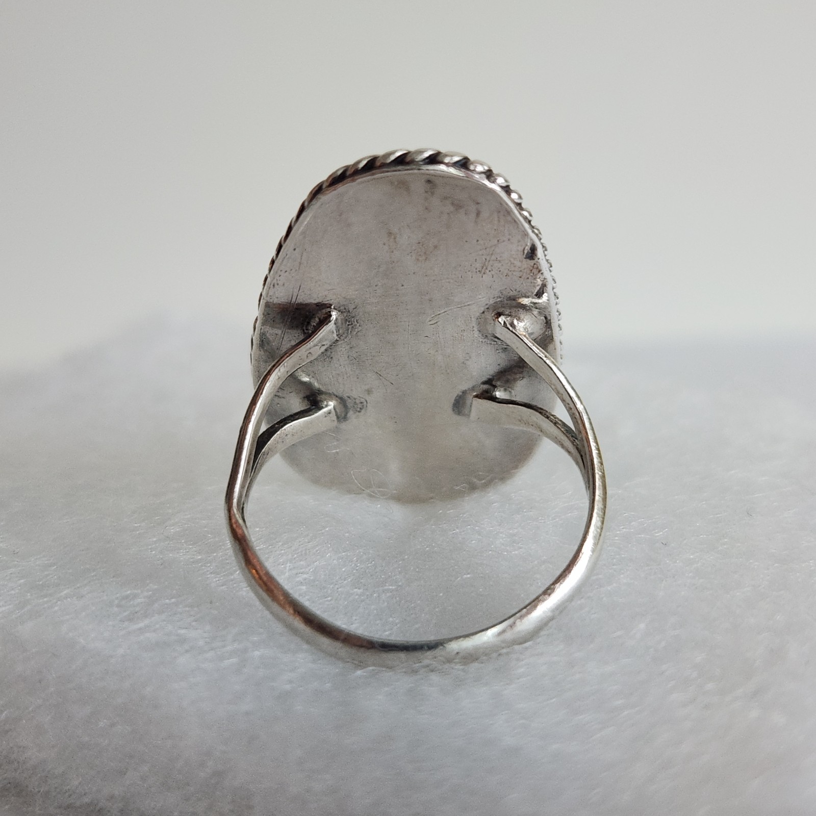 как выглядит Size 8 Sterling Silver Turquoise Long Oval Statement Ring 7.2g фото