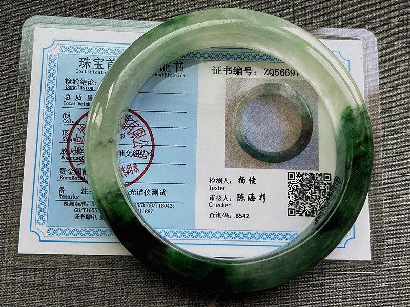 Certified Natural Grade AAA Ice Burmese Green Jade jadeite bracelet bangle 56MM