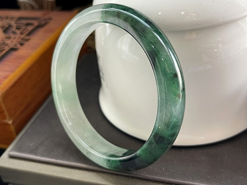 как выглядит Certified Natural Grade AAA Ice Burmese Green Jade jadeite bracelet bangle 56MM фото