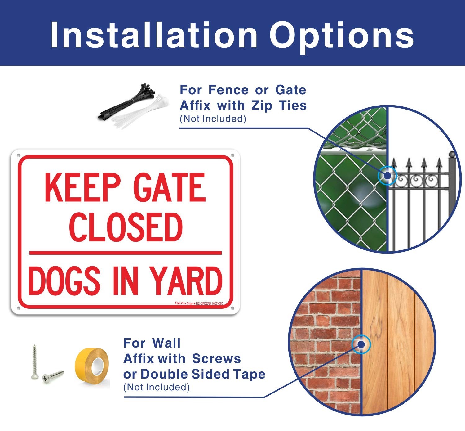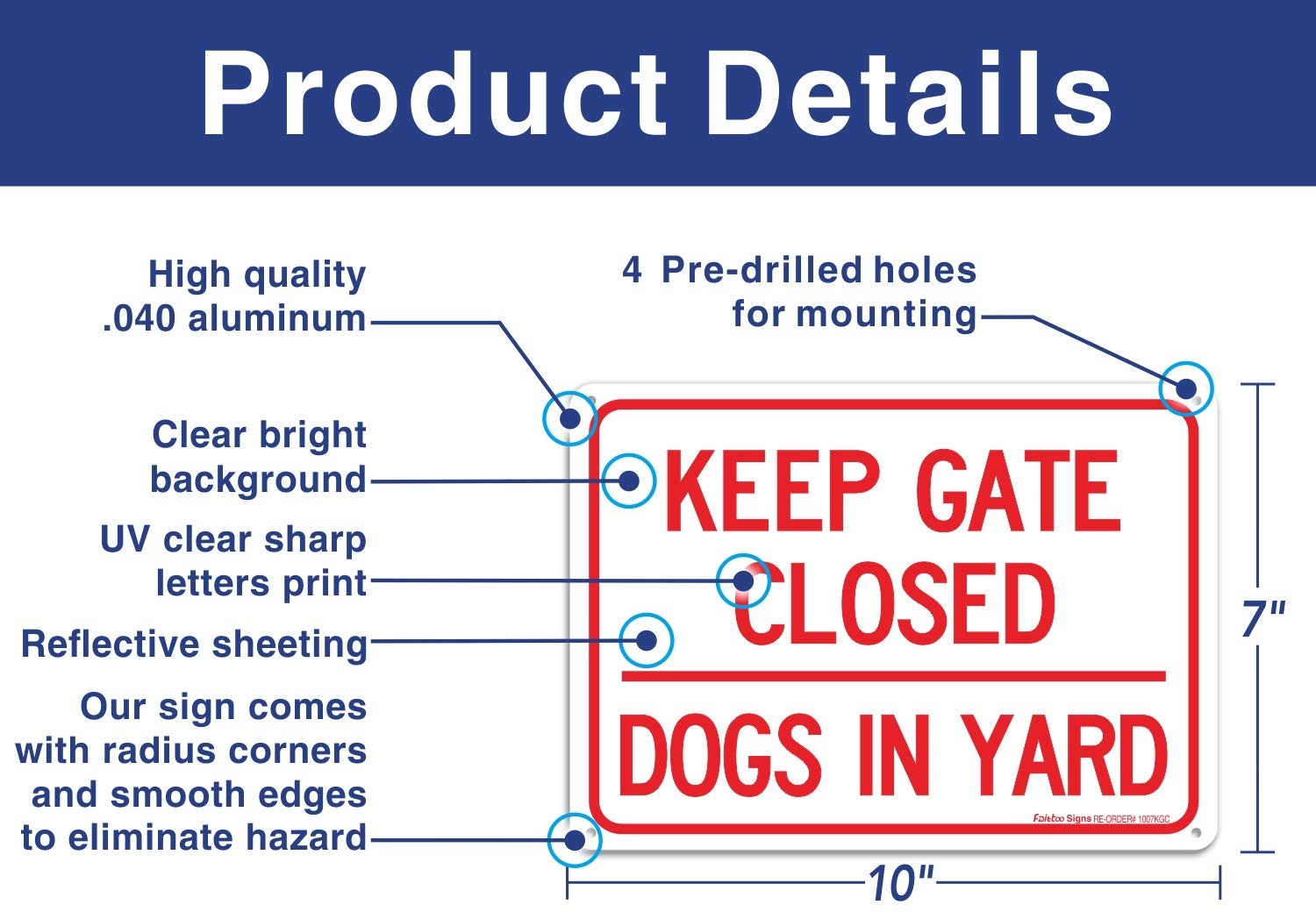 как выглядит 2 Pack Keep Gate Closed Dogs In Yard Sign 10x7 Aluminum UV Protected Durable фото
