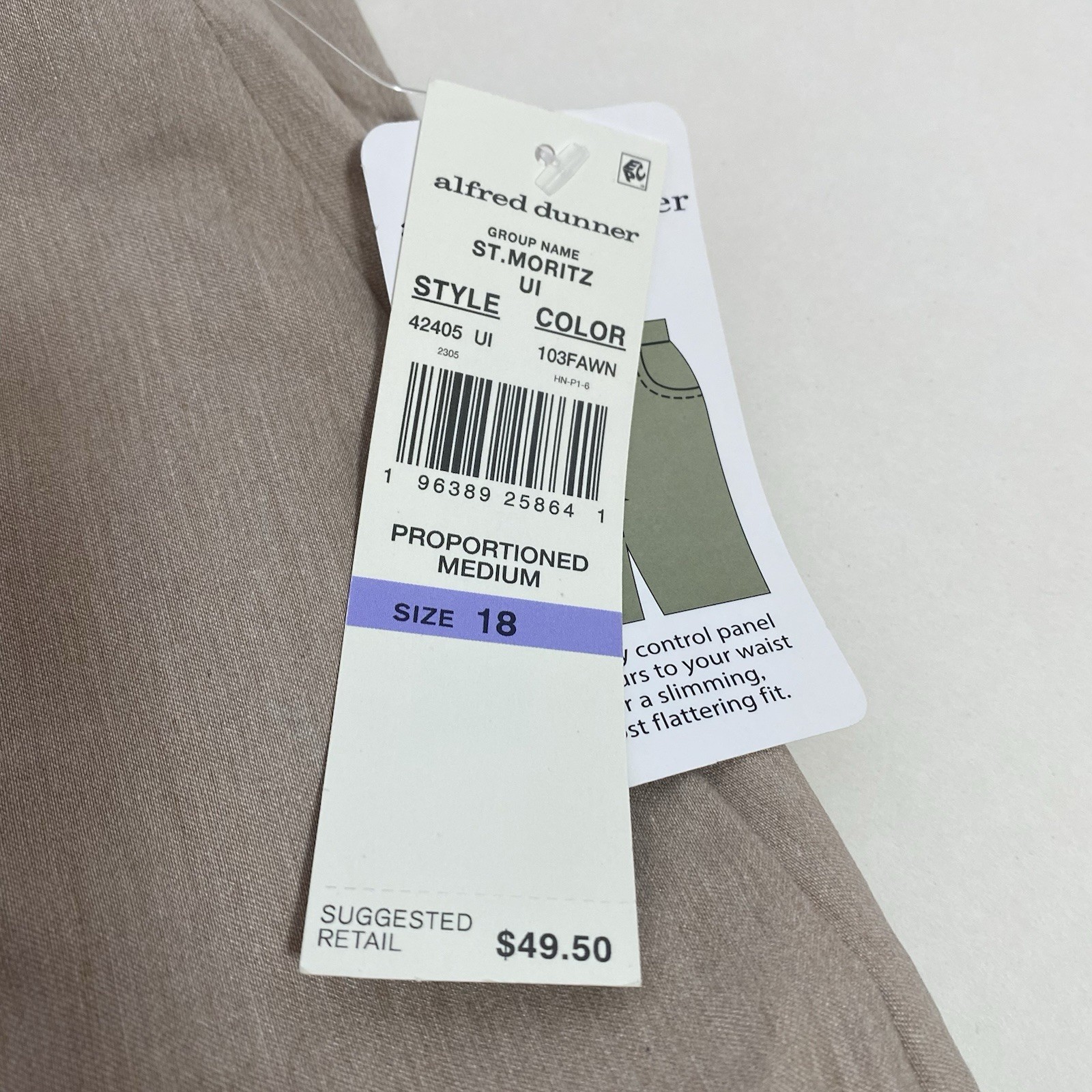 как выглядит Alfred Dunner Allure Super Stretch Womens Pants Size 18 Beige Pull On NWT фото