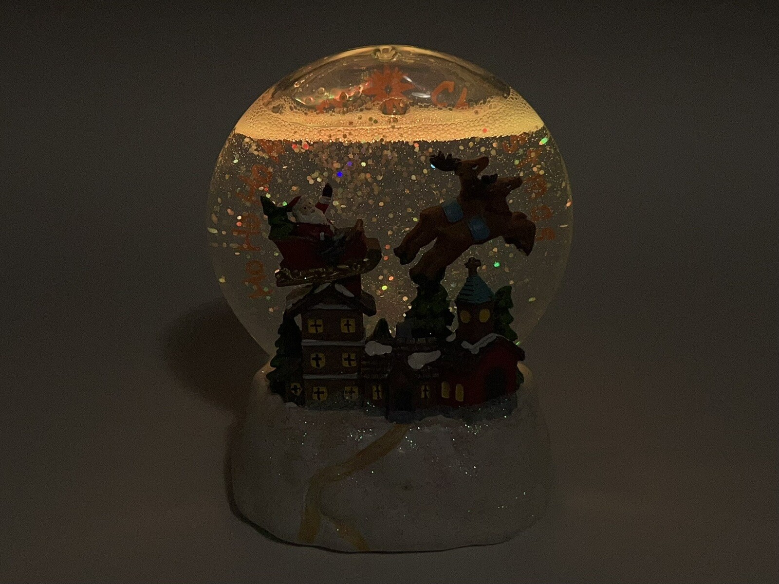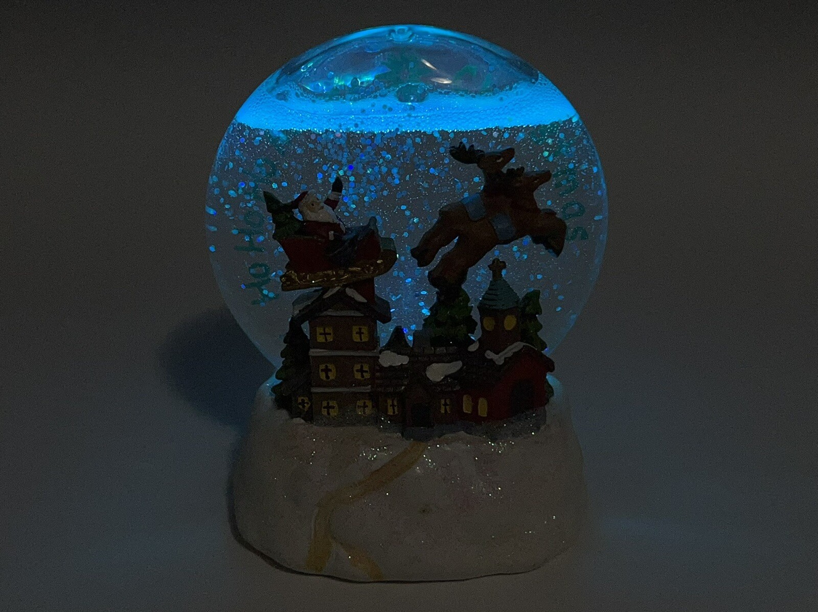 Led light up santa and sleigh snow globe