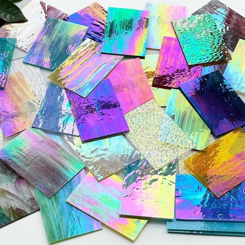 как выглядит Iridescent Stained Glass Sheets Variety Pack 36 Pcs Craft DIY Mosaic Projects US фото