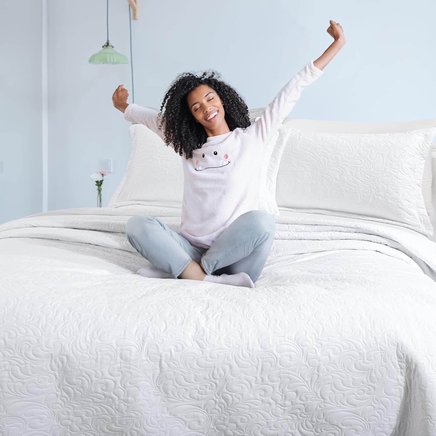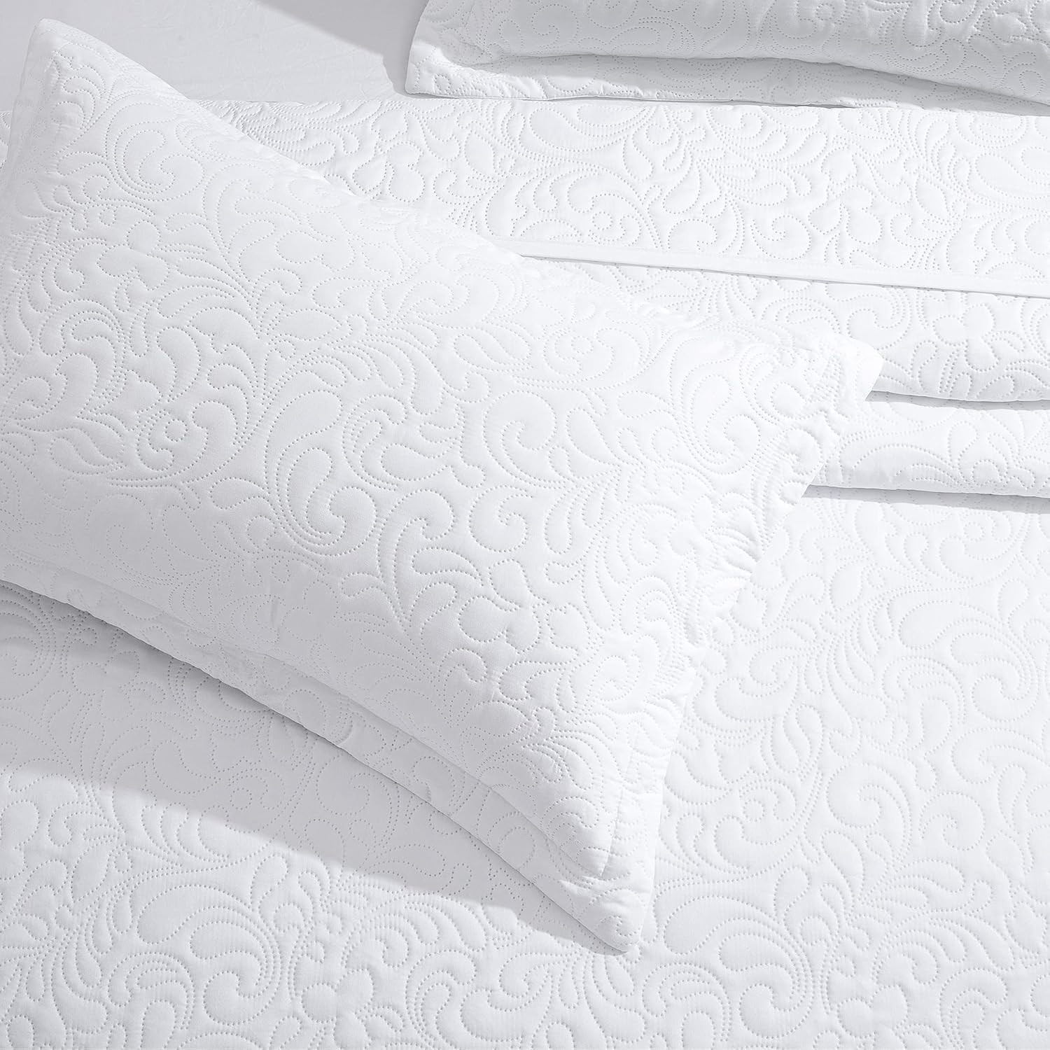 как выглядит Bedspread Alaska King Oversized Quilt Set 3Pc Lightweight White 132x120 фото