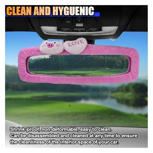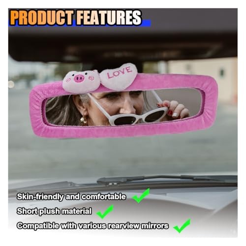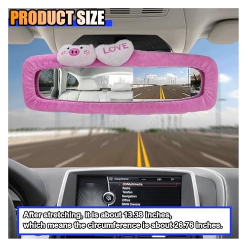 Cute Cartoon Car Rear View Mirror Cover, Elastic Plush Car Pink-Love Pig