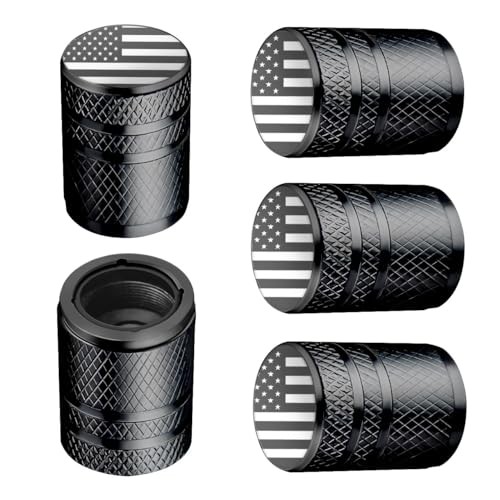 Tire Valve Stem Caps - 5 Pack Metal Air Caps with Plastic American Flag Black