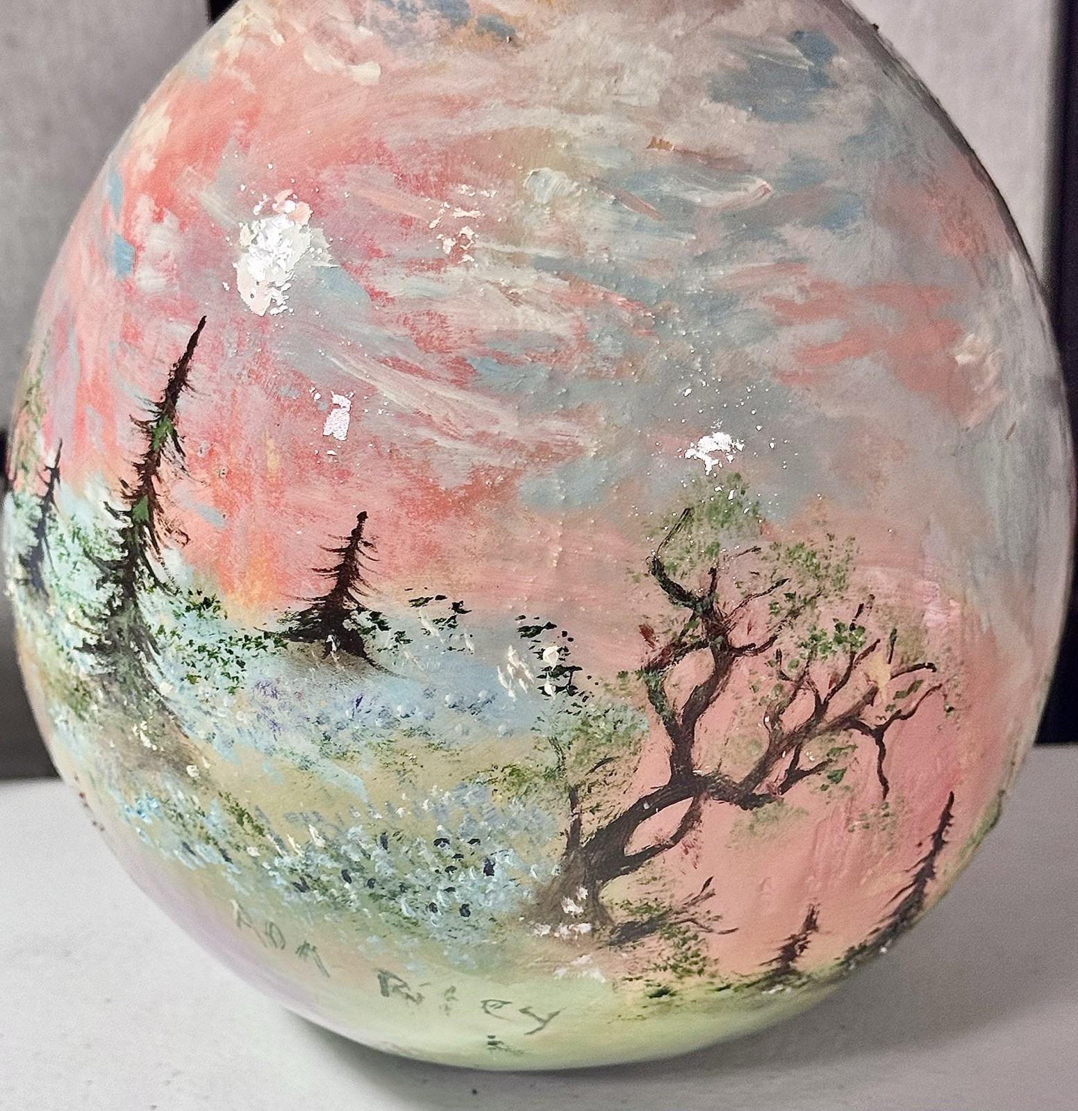 Hand painted Gourd Western Scene Signed