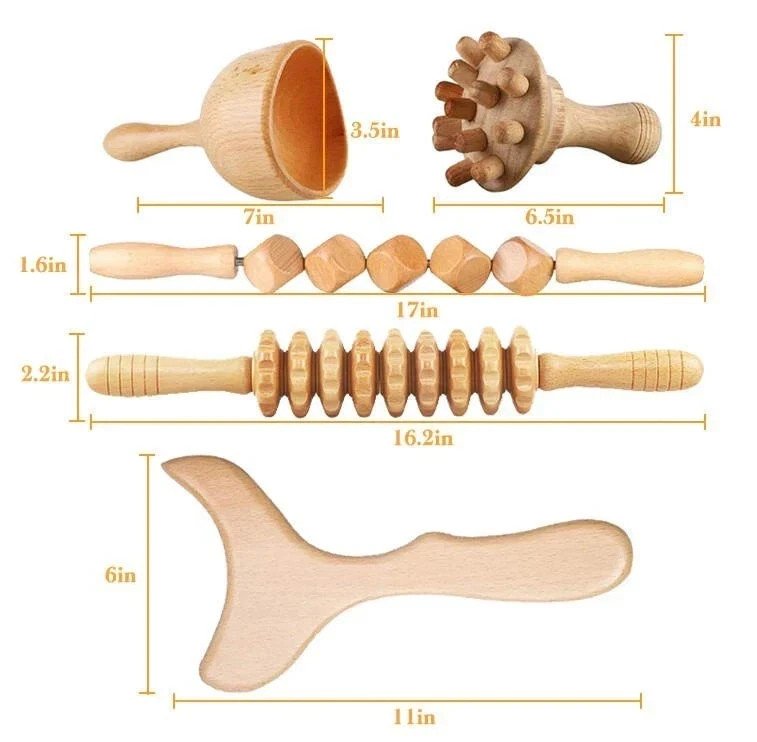 5-in-1 Wood Therapy Kit for Lymphatic Drainage Body Sculpting Massage Tools