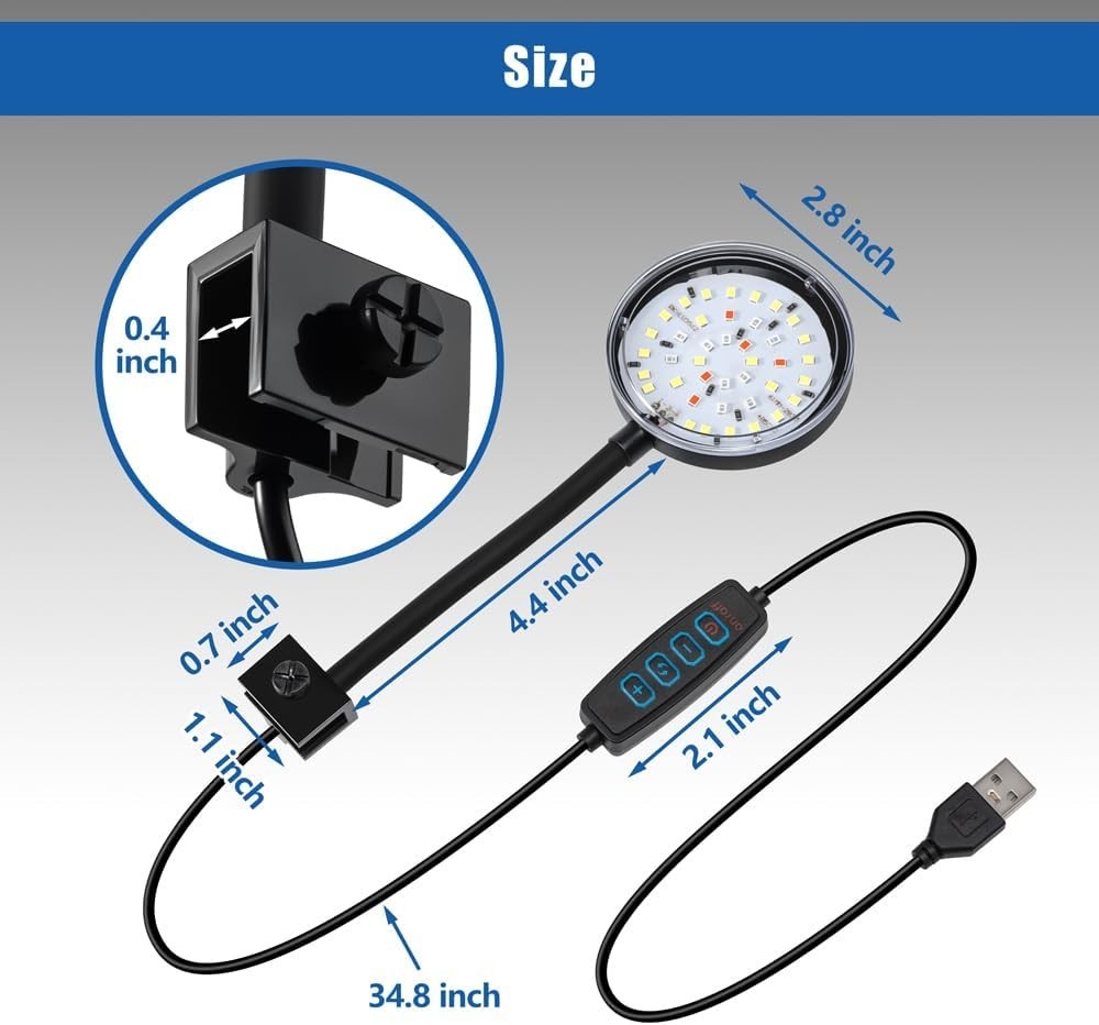 8W Clip-On LED Aquarium Light USB Dimmable for 1-5 Gallon Tanks