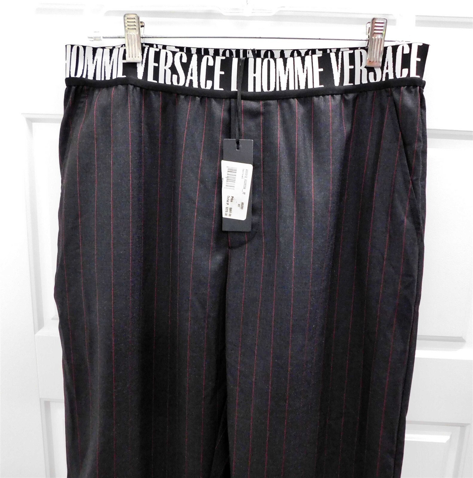 New Versace Homme Black Red Pinstripe Trousers Pants 950rt sz M